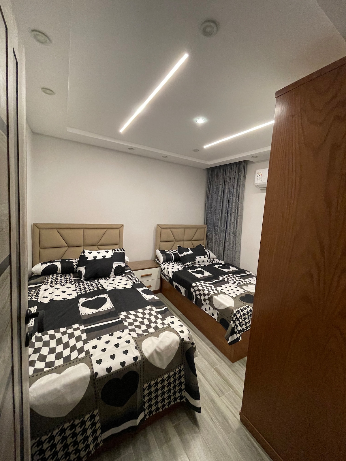 This fully renovated apartment is just steps from El-Nozha metro, the International Airport of Cairo, and the local market for fresh vegetables and meat daily. It features comfortable beds, a cozy living area, and a well-equipped kitchen with a luxurious espresso machine and V60 for coffee lovers. There's also a washing machine and a dishwasher. Enjoy meals or relax on the balcony with dining space. Please note: the vibrant market nearby brings some background market related sounds.
