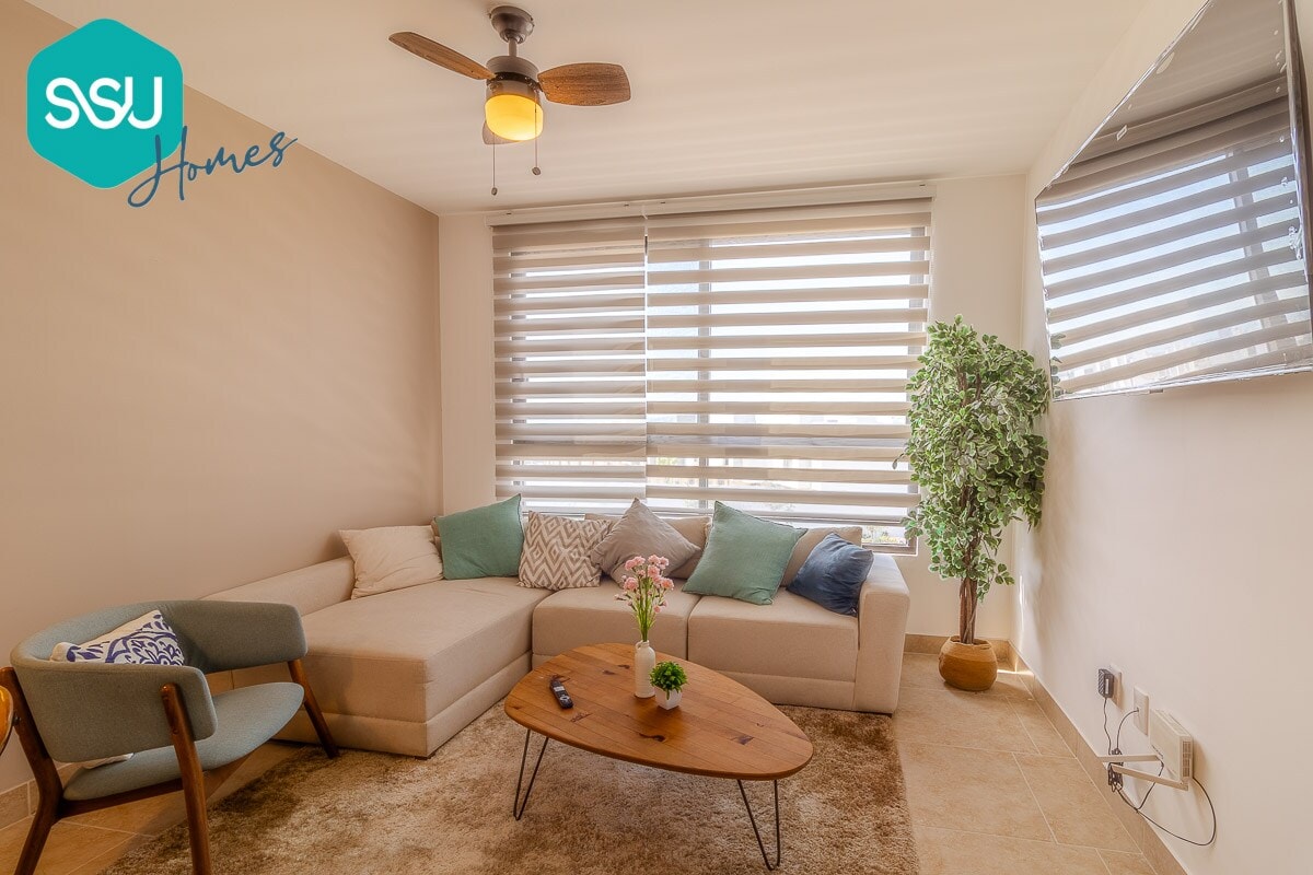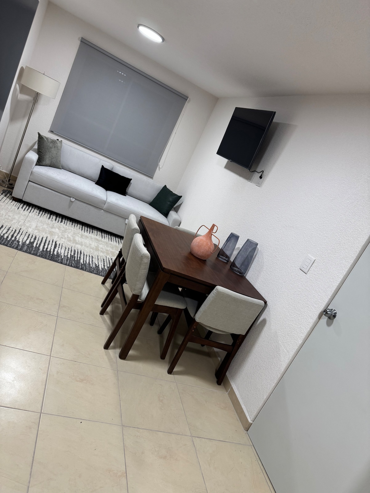 Conoce este amplio departamento de estilo contemporáneo para 6 personas donde podrás disfrutar una estancia tranquila y llena de comodidades. Hemos preparado todo para que disfrutes al máximo nuestro alojamiento. Nuestro espacio es ideal para escapadas de fin de semana o para estancias de mediano plazo donde podrás hacer Home Office. Hemos seleccionado cuidadosamente todos los detalles para que te sientas como en casa desde tu llegada y puedas disfrutar tu estancia al máximo. ¡Bienvenidos!