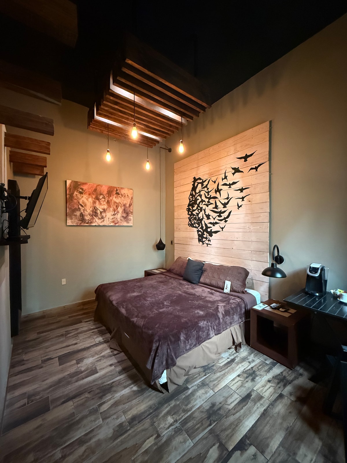 Hospédate en este pequeño hotel, casa colonial en el corazón del centro de queretaro, Ventanas anti ruido, Las camas son muy cómodas,cuatro suaves almohadas por cama ,ventilador, cafetera de capsula, shampoo , crema , jabon 0 waste, servibar secadora de pelo plancha televisión smart tv, television satelital SKY, internet alta velocidad y nuestra espectacular terraza con las mejores vistas del centro de Queretaro.