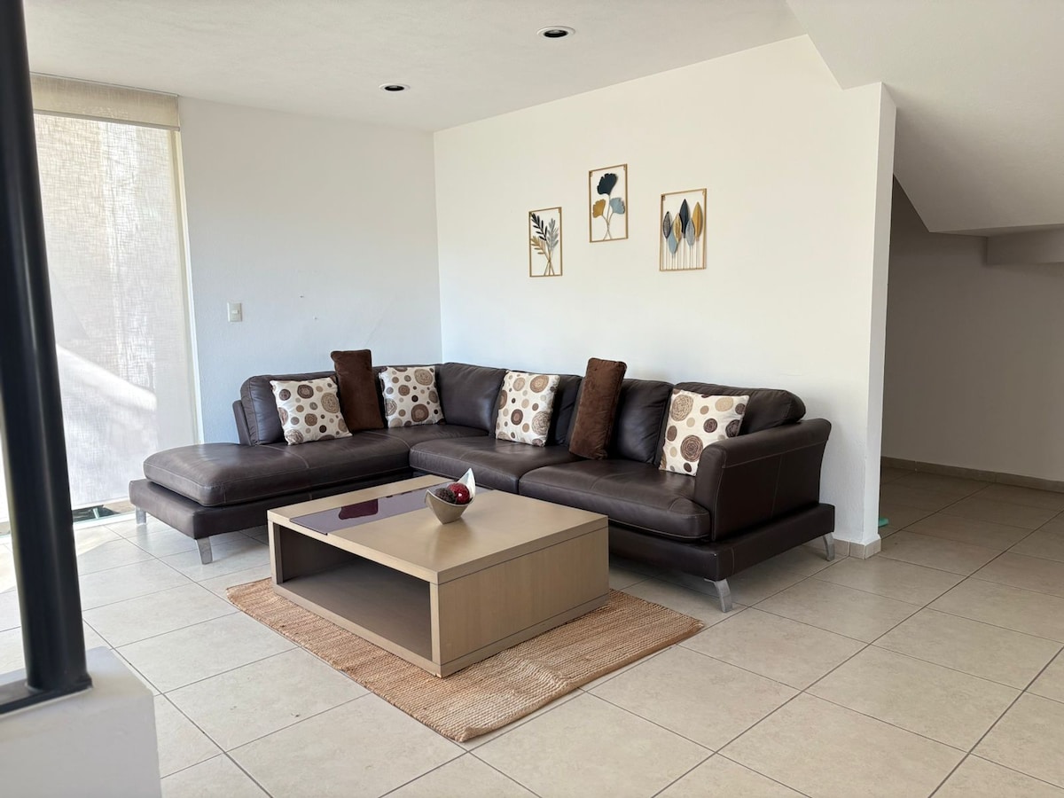 Tropic: Beach-Inspired Apartment in Querétaro Tropic is a cozy, beachy-style apartment perfect for remote workers, digital nomads, or tourists. Located in a prime area of Querétaro, it’s close to cafes, restaurants, stores, and a bus station. The apartment features a queen bed, sofa bed (accommodates up to 3), a dedicated workspace with stunning views, and a fully equipped kitchen. Enjoy the perfect balance of comfort, style, and convenience during your stay in Querétaro.