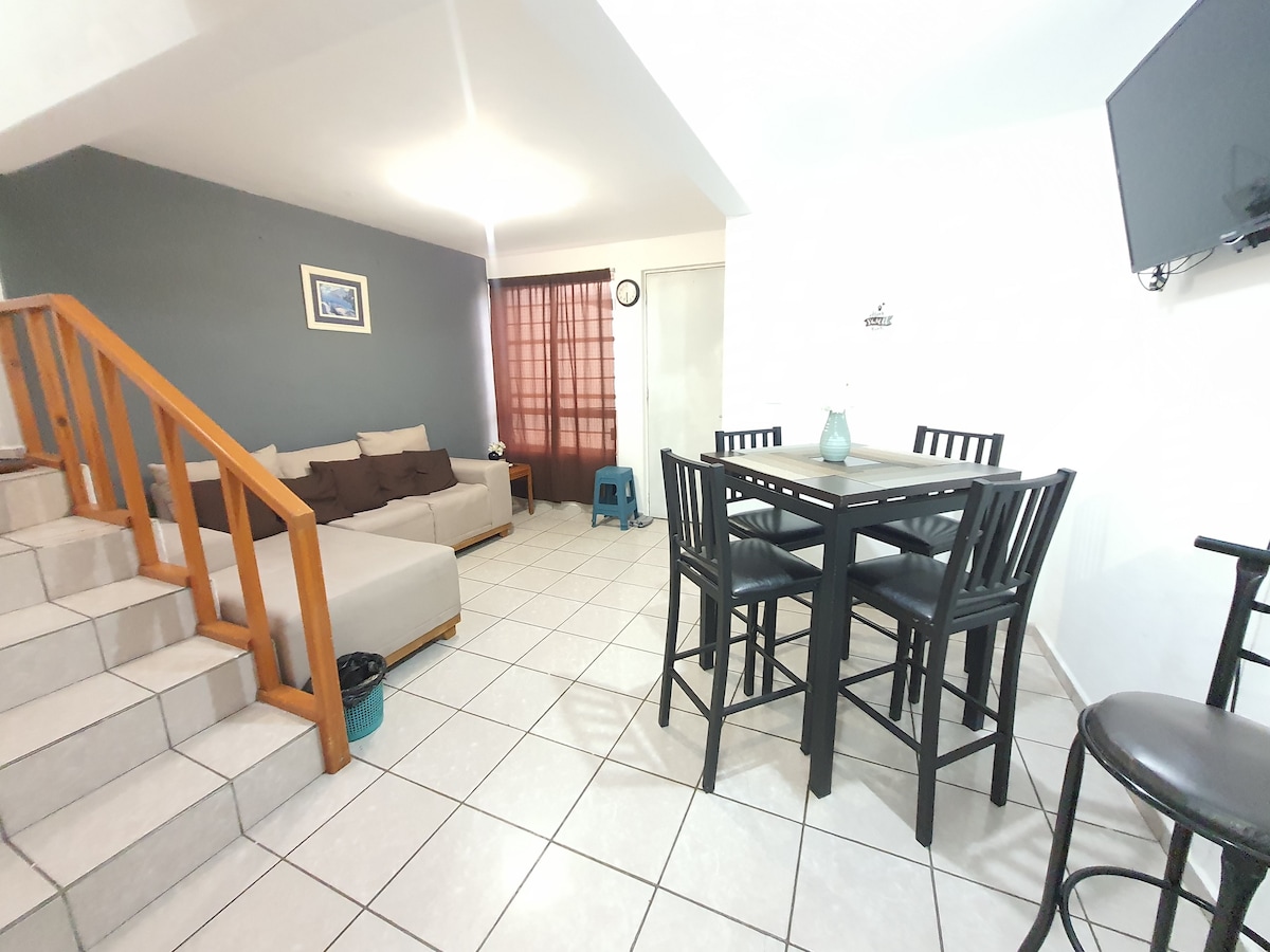 ✰ FACTURAMOS✰ pet y kid friendly Para hasta 6 huéspedes, a pocos minutos de Cimatario, Teatro Metropolitano y Centro de Congresos, Plaza de Toros, Terminal de Autobuses, Estadio Corregidora, Auditorio, Parque Industrial Balvanera, Centro, Feria, Lienzo Charro Hermanos Ramírez, salida a Celaya. Cómoda casa estilo contemporáneo prácticamente en excelente área, llena de comercios y restaurantes, limpias y cómodas habitaciones, servicios y amenidades para que puedas sentirte como en casa.