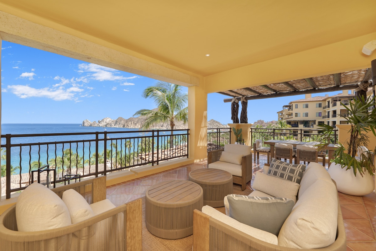 The condo's 180º view lets you enjoy sunrise and sunset at the Cabo Arch from your breakfast-dinner table! Terrace design offers intimacy and escape. Ideal for a romantic stay, home office with paradise views, BBQ dinners with sunset vistas, relaxing hammock siestas, whale-watching while cooking, and sunrise views from bed! Walking access to Cabo's top two beaches and next to The Cape and Thompson Hotel. Please remember, this is a rental condo, not a hotel, and the price reflects that.