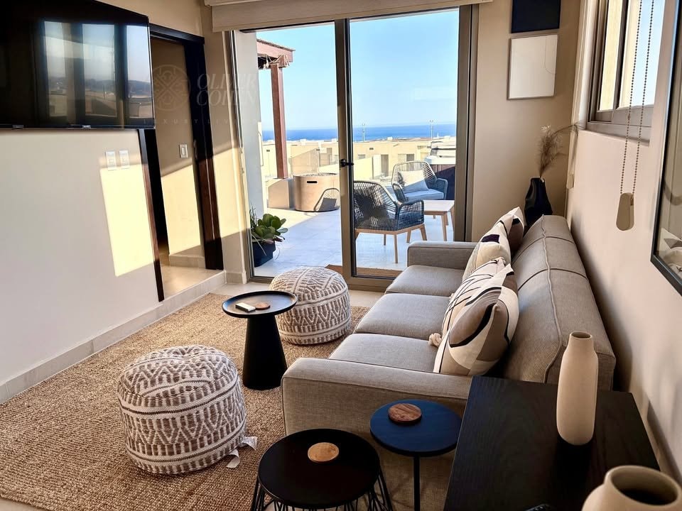 Enjoy the luxury lifestyle in this exquisite 2-bedroom, 2-bathroom apartment offering unparalleled views of Cabo San Lucas, reaching out to the horizon of the sea. Situated in a privileged location, this residence provides luxurious amenities on the 4th floor is the pool area, firepit, gym, and a bar, perfect for entertaining or relaxing in style. Experience the epitome of comfort and convenience in this meticulously designed sanctuary.