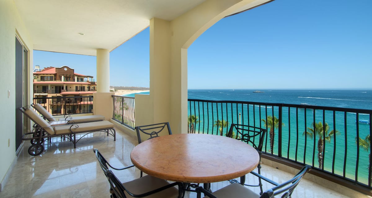 Get ready to book your luxurious 5-star vacation at this amazing studio with a kitchen and balcony. It has 2 double beds for 3 adults or 2 adults, 2 children under 12. This is a breathtaking, luxury beachfront resort with every amenity under the sun... and year-round sunshine! Beachfront access Wifi Room cleaning A/C Laundry services Free Parking Swimming pool Hot tub Gym Sauna Tennis Courts Entertainment Only be a short walk to nightlife, Cascadas Beach Grill, Cabo Sky Tours & The Marina!