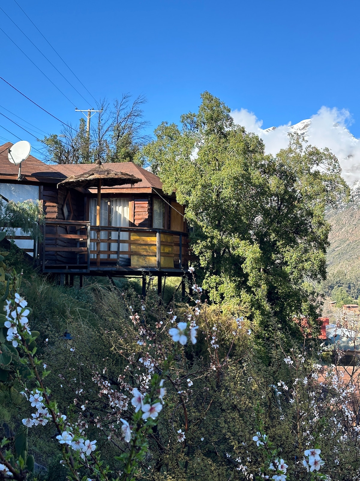 Pequeña cabaña rústica,de un ambiente, SIN cocina, con parrilla en la terraza.Inserta entre grandes arboles, a metros del rio Maipo con acceso exclusivo para la cabaña. Cuenta con terraza y estacionamiento privado. Alojamiento ideal para parejas y aventureros, tinaja con agua caliente en la terraza, para relajarte con el sonido del río bajo un cielo estrellado. La tinaja es de uso privado y sin horarios.