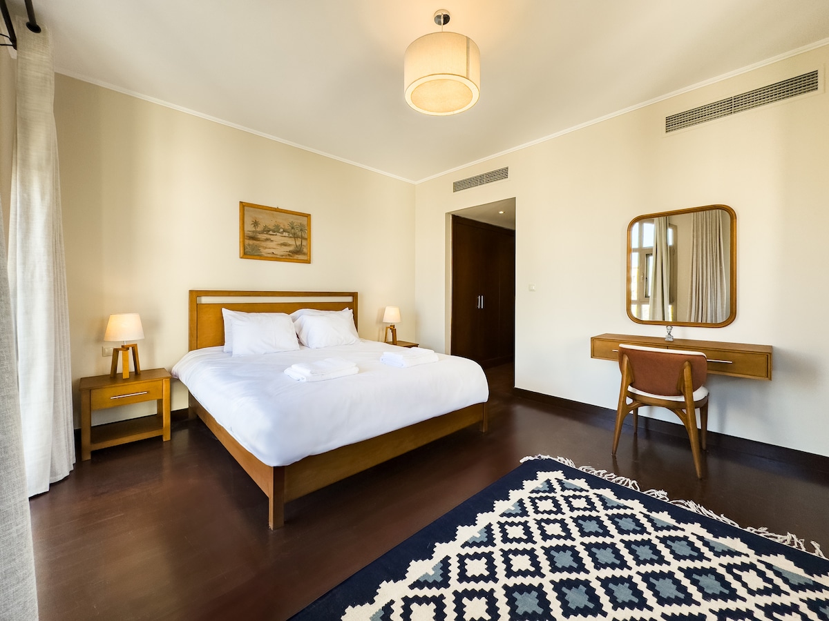 Enjoy this peaceful 2BR retreat in Golden Gates Compound, ideal for exploring Cairo. Just 15 minutes from Cairo Airport, Heliopolis and Nasr City, 10 minutes to New Cairo, and 5 minutes to Maadi. Unwind with a 55-inch Smart TV with streaming services, a stylish American kitchen with bar seating, and a quiet neighborhood setting. Experience Cairo with comfort, convenience, and a touch of calm.