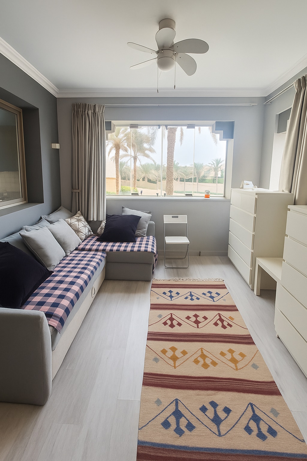 Experience a modern designer stay in Uptown Cairo. This curated apartment offers two cozy bedrooms, a bright living area, a fully equipped kitchen, and thoughtful details throughout. Enjoy access to a secure gated community with landscaped paths and a heated pool. A calm, elegant space perfect for relaxing, working, or exploring Cairo with comfort and ease.