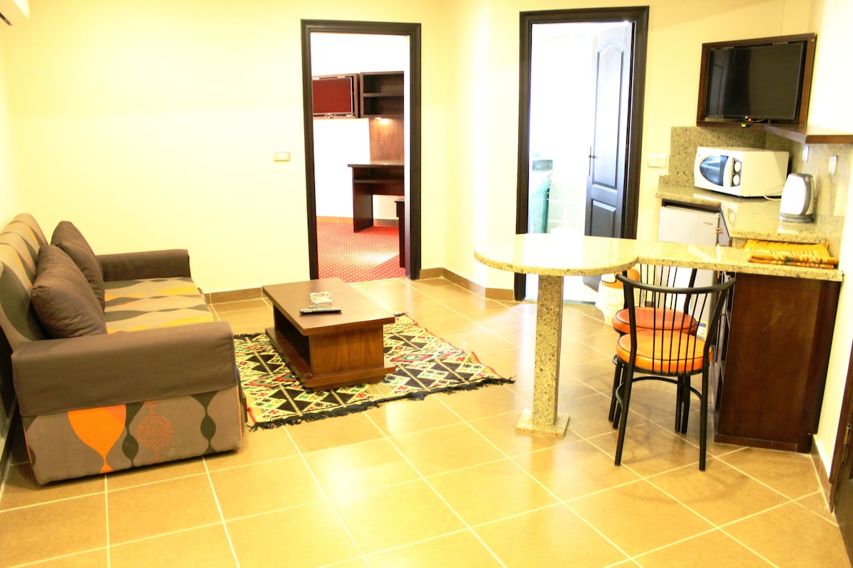 Welcome to Twin Superior Studio, Mokattam! Unwind in this 35 sqm modern retreat, offering 2 single beds, a sofa bed, and contemporary amenities for up to 3 guests. Located in the Golden Gates Compound, Mokattam, the studio is perfect for those seeking comfort and convenience. Enjoy high-speed WiFi, a Smart TV with free subscriptions to Netflix, WatchIt, and Shahid, and a fully equipped kitchenette for a relaxing stay near Cairo’s key attractions.