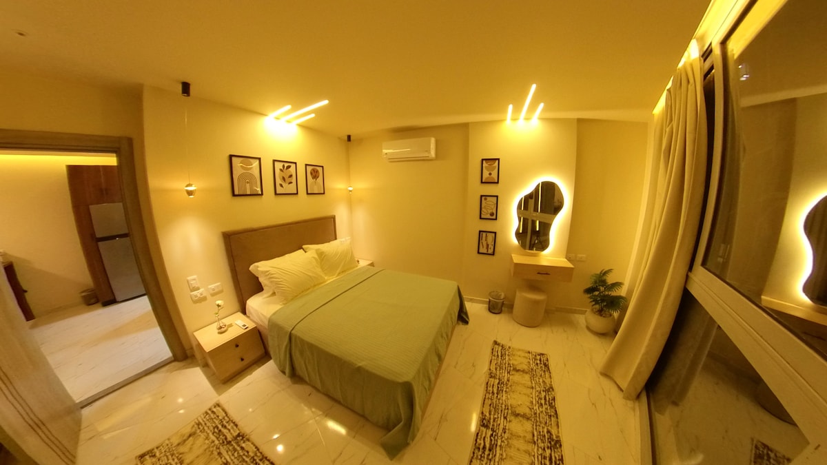 Welcome to Queen 1 BR APT Golden Gates compound, Mokattam! This 65 sqm apartment accommodates up to 3 guests, featuring 1 queen bed, 1 sofa bed, and a private bathroom. The fully equipped kitchen ensures comfort during your stay. Enjoy a peaceful retreat in the prestigious Golden Gates Compound with modern amenities, including air conditioning, high-speed WiFi, and a Smart TV with Netflix, WatchIt, and Shahid. Pets are welcome, and a free breakfast is included for a relaxing start to your day.