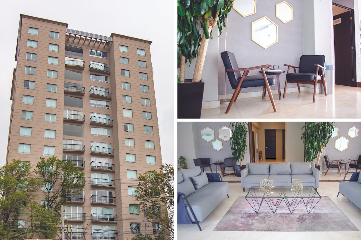 The apartment is very cozy and convenient. It is in a neighborhood near Santa Fe. Aprox 5 minutes from Santa Fe shopping mall (one of the largest in Latam) and Santa Fe business offices. Wifi, smart TV, appliances, parking, communal laundry and a person in charged 24/7.
