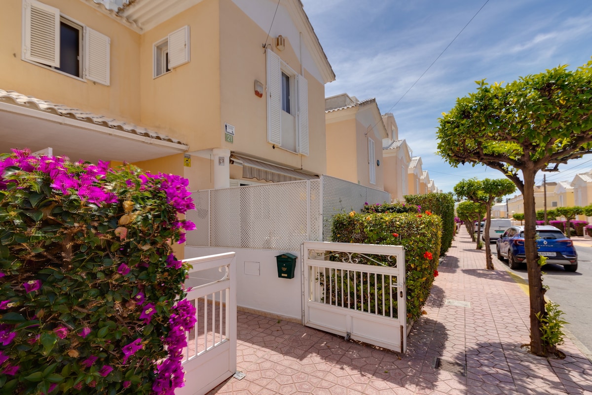 This fantastic house near Guardamar del Segura, on the coast of Costa Blanca, offers six beds in three bedrooms and three bathrooms. Fully equipped kitchen to prepare tasty meals. A terrace on the ground floor where you can have breakfast in the morning sun or enjoy the shade in the afternoon. A private sunterrace on the roof, where you can enjoy the sun from morning until night. A community outdoor pool. Guardamar has a fantastic 14 km beach located 25 minutes by car from Alicante airport.