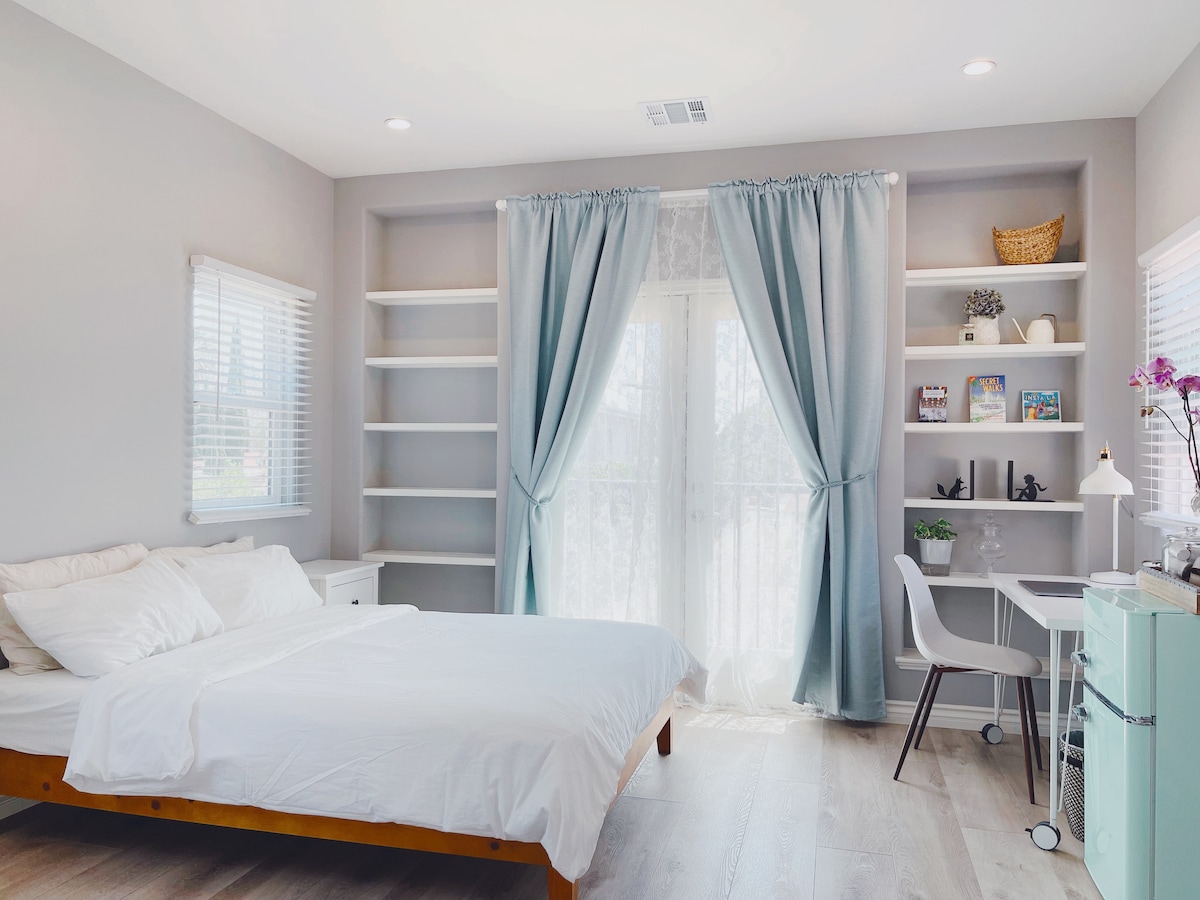 You will have a great time at this beautiful and comfy place. New renovated studio in a gated property and with your own private entrance, kitchenette, bathroom, no crossing to any others. This place is in downtown Baldwin Park and walking distance to all the restaurants, Starbucks, and grocery stores. Self check-in and check-out, free parking. It's about 18 miles to Downtown LA, 25 miles to Universal Studio and 27 miles to Disney Park. Super convenient location!
