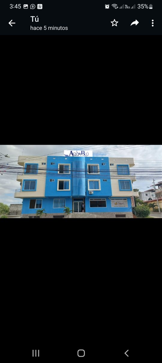 "Aquamarina Suites, un confortable hospedaje, en una excelente ubicación de ingreso a la ciudad de Manta, muy cerca del Aeropuerto y el Terminal Terrestre. Nuestro moderno edificio ofrece un ambiente familiar a nuestros huéspedes, calidez en la atención, servicio de alimentación, WI FI, aire acondicionado, tv por cable, agua caliente, piscina, gimnasio, servicio de lavandería, parqueadero privado, guardianía, contamos recientemente con un autocine dentro de las instalaciones del hotel.