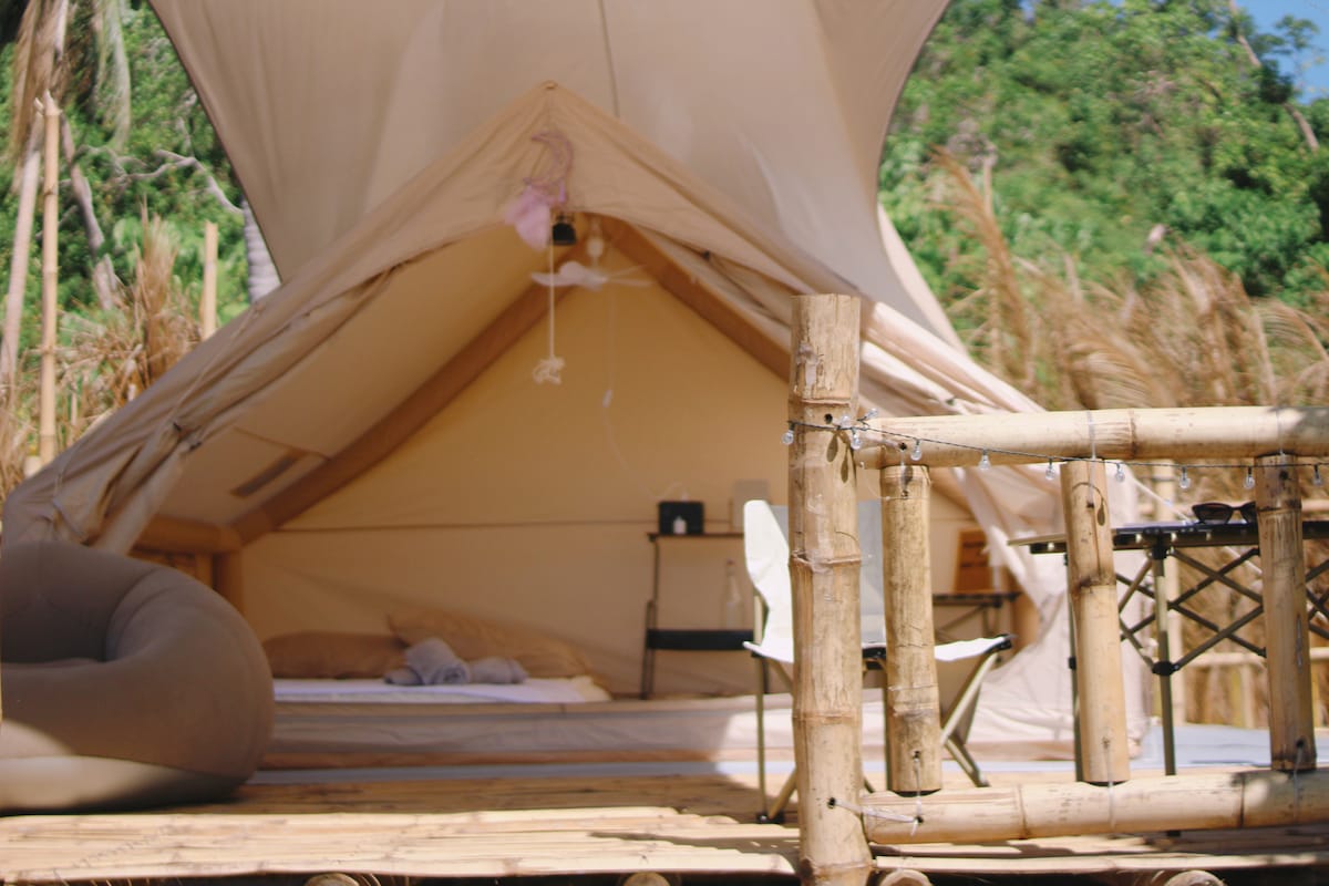 Escape to nature without sacrificing comfort in our Seaview Kubo Tent, a charming and practical retreat designed for both short visits and extended stays. - 🔌 Charging Outlet - 🌀 Fan-Cooled Comfort - 🛏️ Complete Beddings - 🌦️ Weather-Resilient Design: Built to withstand rain and extreme heat, offering reliable shelter in all conditions. - 🚿 Shared Bathroom
