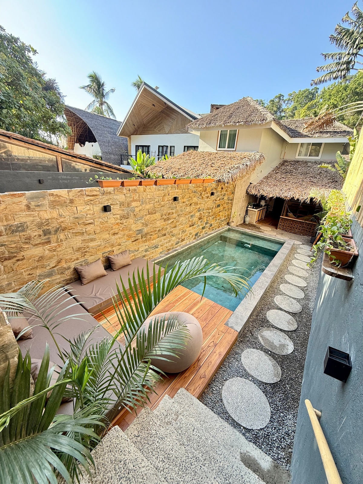 Introducing Bliss Villa in El Nido, Palawan – a luxury haven that is nestled amidst lush landscapes, only a short walk from the beach and iconic sunset views. This three-bedroom pool villa offers a unique blend of traditional Filipino charm and modern luxury it also comes with a fully equipped kitchen and spacious living area as well as access to our Boutique Resort boasting fantastic dining experiences, a wellness centre and spa perfect for a relaxing stay in El Nido.