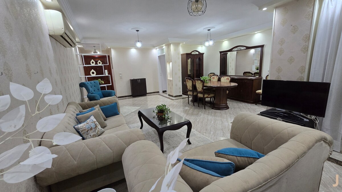 Indulge in luxury with this stunning apartment featuring both a private balcony & patio. Immerse yourself in breathtaking city views or unwind in your tranquil outdoor oasis. Perfectly located in a safe, tree-lined neighborhood. Modern amenities & chic decor. Your dream Cairo stay starts here!