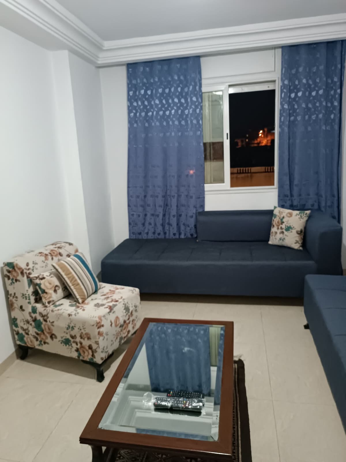 appartement de haut standing meublé à El Manar 1 Tunis, de 120 m2 se compose de 2 chambres à coucher , un grand salon , cuisine équipée, salle de bain, TV, Parabole , wifi, espace de travail, chauffage central, , climatiseur, près du campus universitaire et de la clinique el manar, marbre blanc