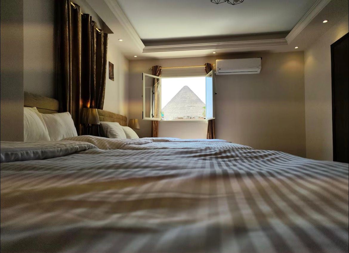 Stay at Pharaoh Pyramids View, only 5 minutes’ walk from the Pyramids gate. 🏜️ Cozy, clean rooms with Wi-Fi, Netflix, . 🌞 with breathtaking Pyramid views . ✨ We also organize private tours (Pyramids, Sphinx, Saqqara, Nile cruises & more). Your perfect stay in Giza – comfort, location & adventure in one! 🌍✨