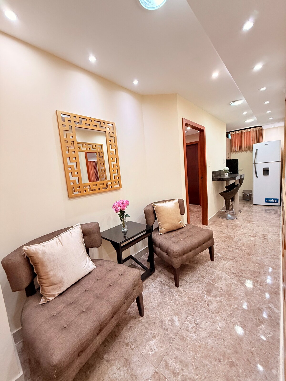 Vive la comodidad y tranquilidad de hospedarte en el exclusivo sector Unioro. Esta moderna suite combina elegancia y funcionalidad, con sala, comedor, cocina equipada y una habitación acogedora con baño completo. Disfruta de aire acondicionado, Smart TV, wifi rápido y acceso a piscina y áreas sociales. Ideal para ejecutivos, parejas o familias que valoran confort, seguridad y una excelente ubicación en una de las zonas más seguras y bonitas de Machala.