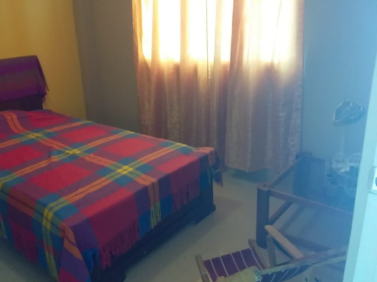 Disfruta de la sencillez de este alojamiento tranquilo y céntrico.contamos con servicio de wi fi tv .aire acondicionado refrigeradora, amplia cama de 2 plazas veladores ventilador de pared cortinas avatibles amplio baño privado contiguo a la habitacion con agua caliente y fria. con sus respectivas toallas un pequeño lavador adicional tipo lavanderia