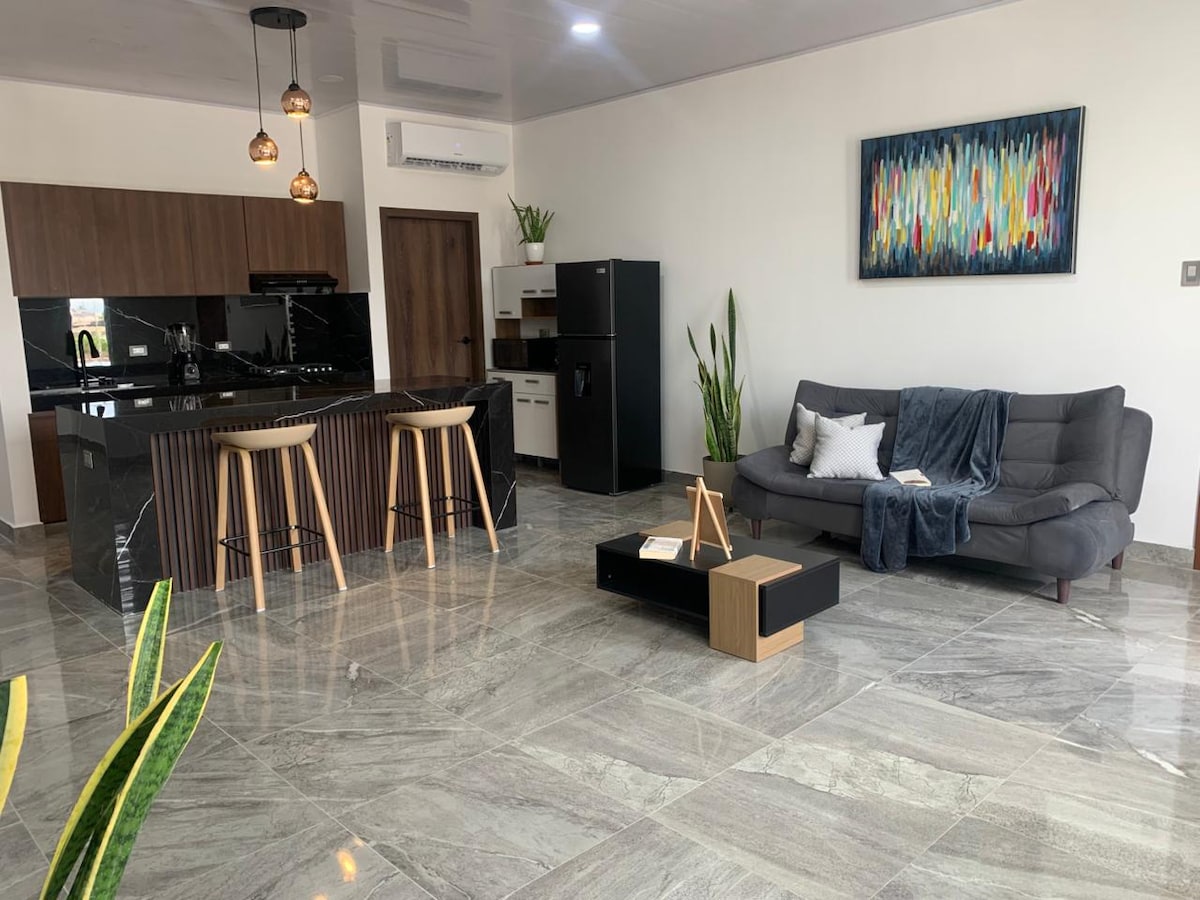 Departamento nuevo, moderno y totalmente equipado, ideal para estancias cortas o largas. Cuenta con espacios amplios, iluminación cálida, una cocina moderna totalmente equipada, sala confortable y dormitorios diseñados para un descanso placentero. Es perfecto para viajes en familia, en grupo o para ejecutivos que viajan por trabajo. Ubicado en una zona estratégica, a solo 4 minutos del centro de la ciudad, con fácil acceso a gimnasios, farmacias, supermercados, tiendas y parques cercanos.
