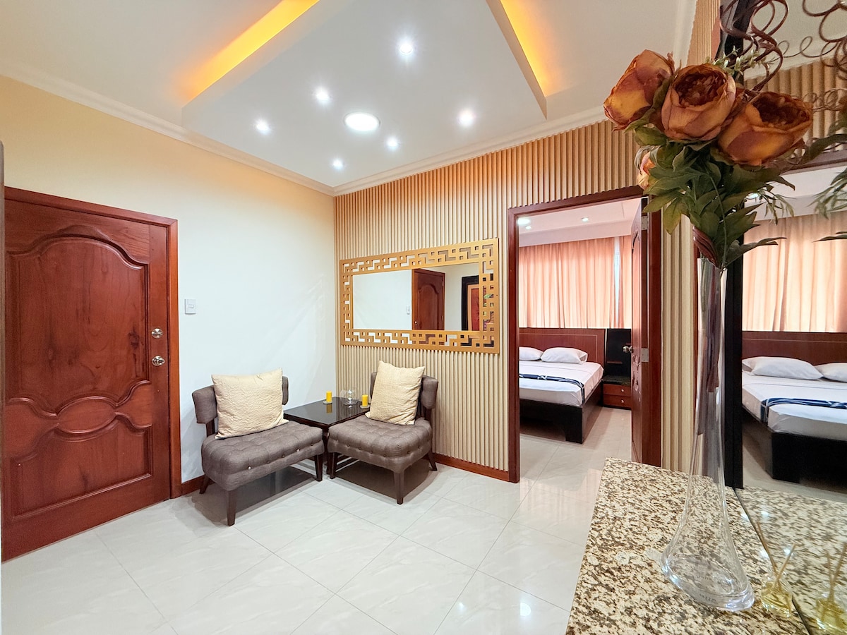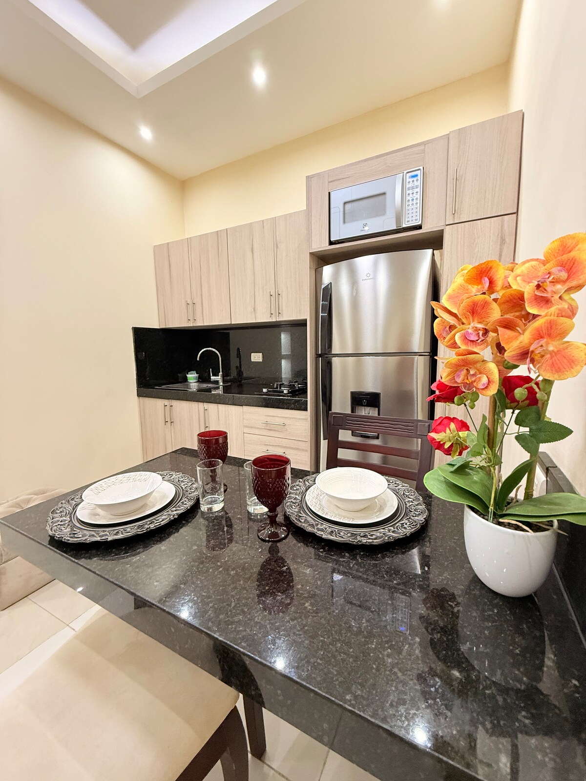 Disfruta de una experiencia con estilo en este alojamiento céntrico. Iluminada, acogedora y elegante suite familiar, con cómodos muebles y acabados de madera. Ideal para disfrutar de unas sensacionales vacaciones, en familia o entre amigos, en la Capital Mundial del Banano; cerca de hoteles, zonas residenciales, restaurantes con lo mejor de su gastronomía rica en mariscos, y del corazón de la ciudad.