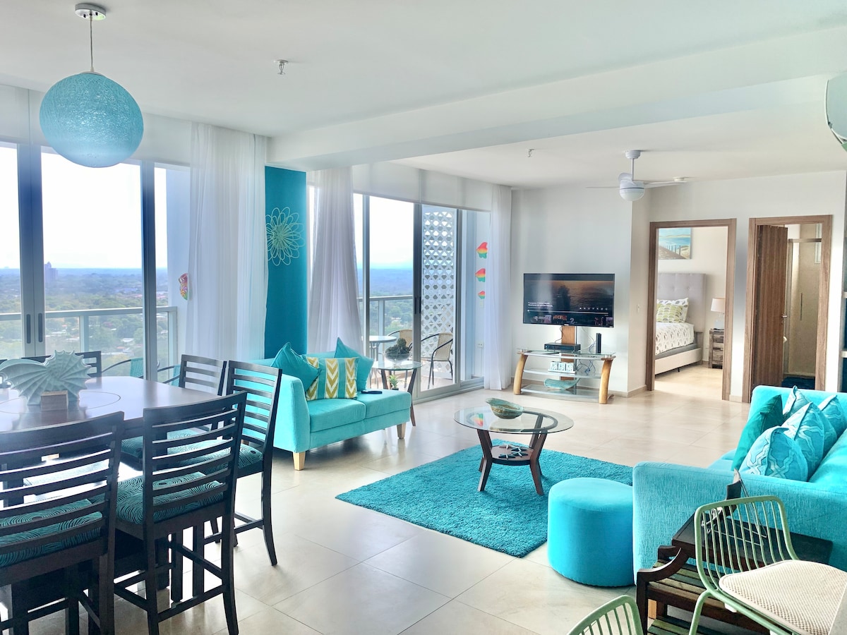 Enjoy this brand new and beautiful apartment on the exclusive beach community of Punta Caelo, just 1h15m away from Panama City. Located in the Solaria building at Punta Caelo, a luxury complex in the Pacific beaches between El Palmar and Rio Mar. This 4 bedroom apartment, with access to all social areas and the Beach Club, has been designed for a relaxing getaway with your family or friends. Access to the beach is just 5 minutes away (walking distance) from the apartment.