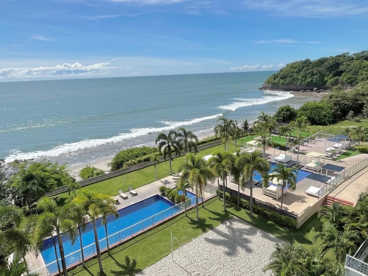 Modern new condo with breath taking views of the Pacific Ocean. We are in a beautiful new beach complex, Punta Caelo, with direct beach access, a beach club, and several large swimming pools. The Social Area is resort quality with deck chairs, infinity pools, billiards, children’s pools and pool beds. The apartment is open and spacious with a fully stocked kitchen and large terrace directly looking out over the ocean.