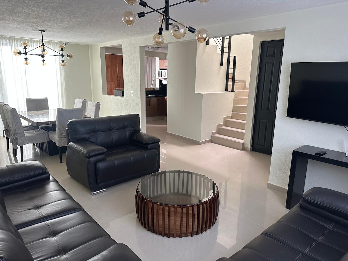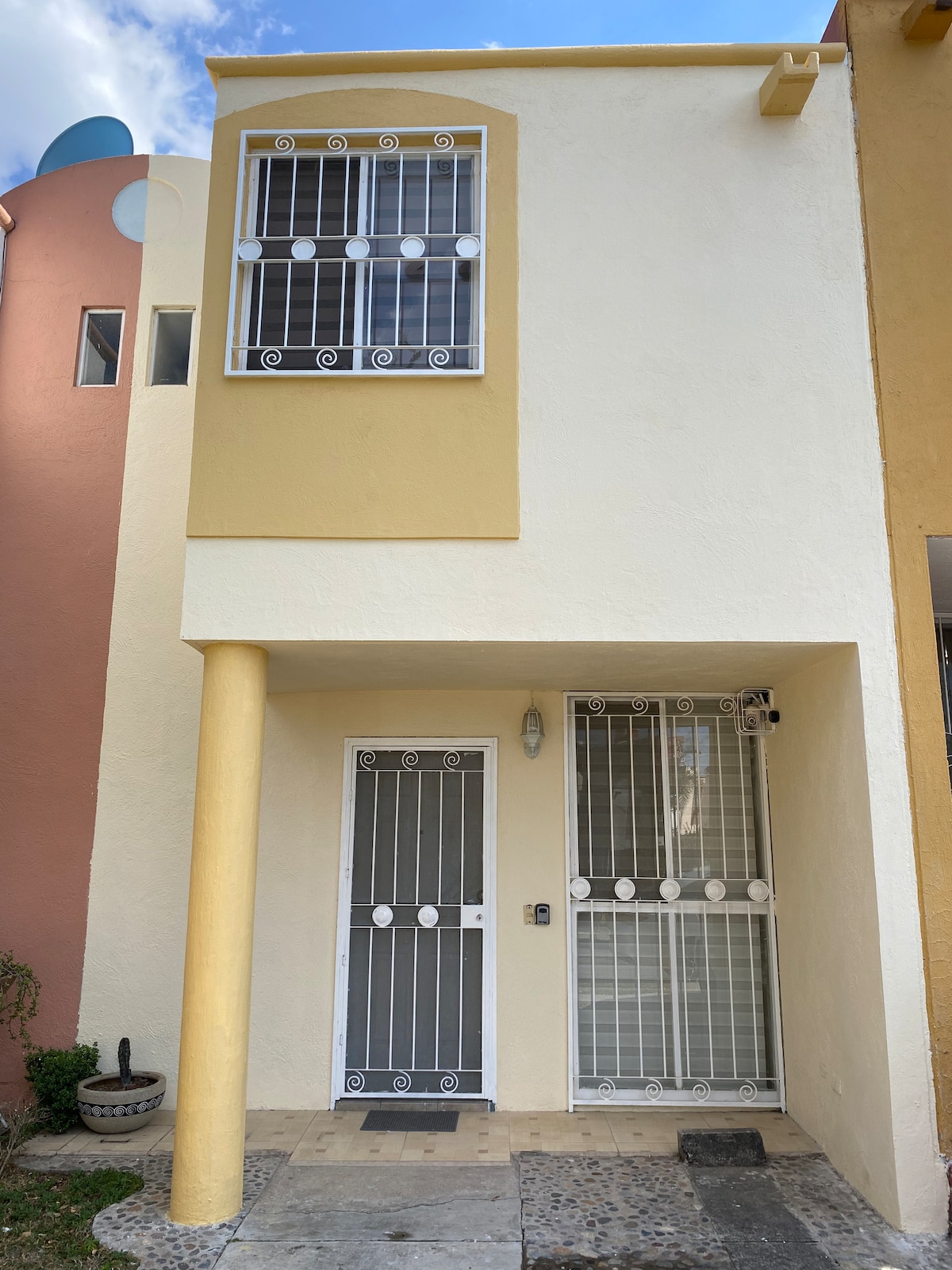 Relájate en esta escapada única y tranquila, sin calor, disfrutando del aire acondicinado en ambas plantas. El mejor lugar para hospedarte ya sea de turismo o de trabajo, cómodo, acogedor y práctico, con una vista excepcional. 4 min en automovil a Walmart, Costco, Sams, Mega y Applebees. 2 niveles. 1er nivel, baño de visitas, cocina equipada, sofá cama, comedor, centro de lavado. 2o nivel, cama king, baño completo y closet. Wifi. 2 estacionamientos. Seguridad 24/7 No niños de 2 a 6 años