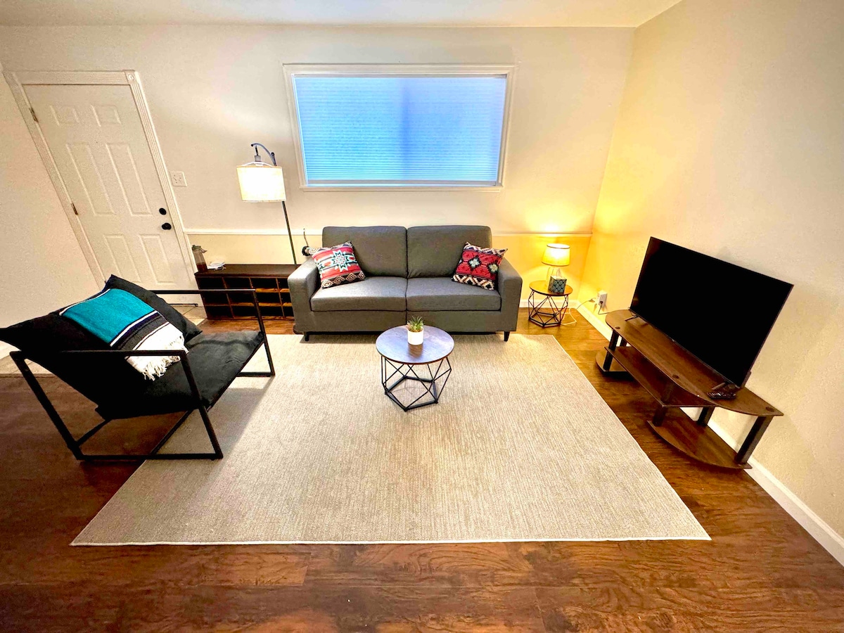 Come stay at the coolest Airbnb in town. This hip downtown space is an upstairs apartment with keyless entry. Newly renovated and beautifully decorated one bedroom with comfy king size bed. Open concept living area with full kitchen, love seat, tv, bar top dining and private bathroom with tiled shower. Enjoy access to full size washer:dryer. Minutes from the shopping and dining of downtown Colorado Springs. Permit number STR0899