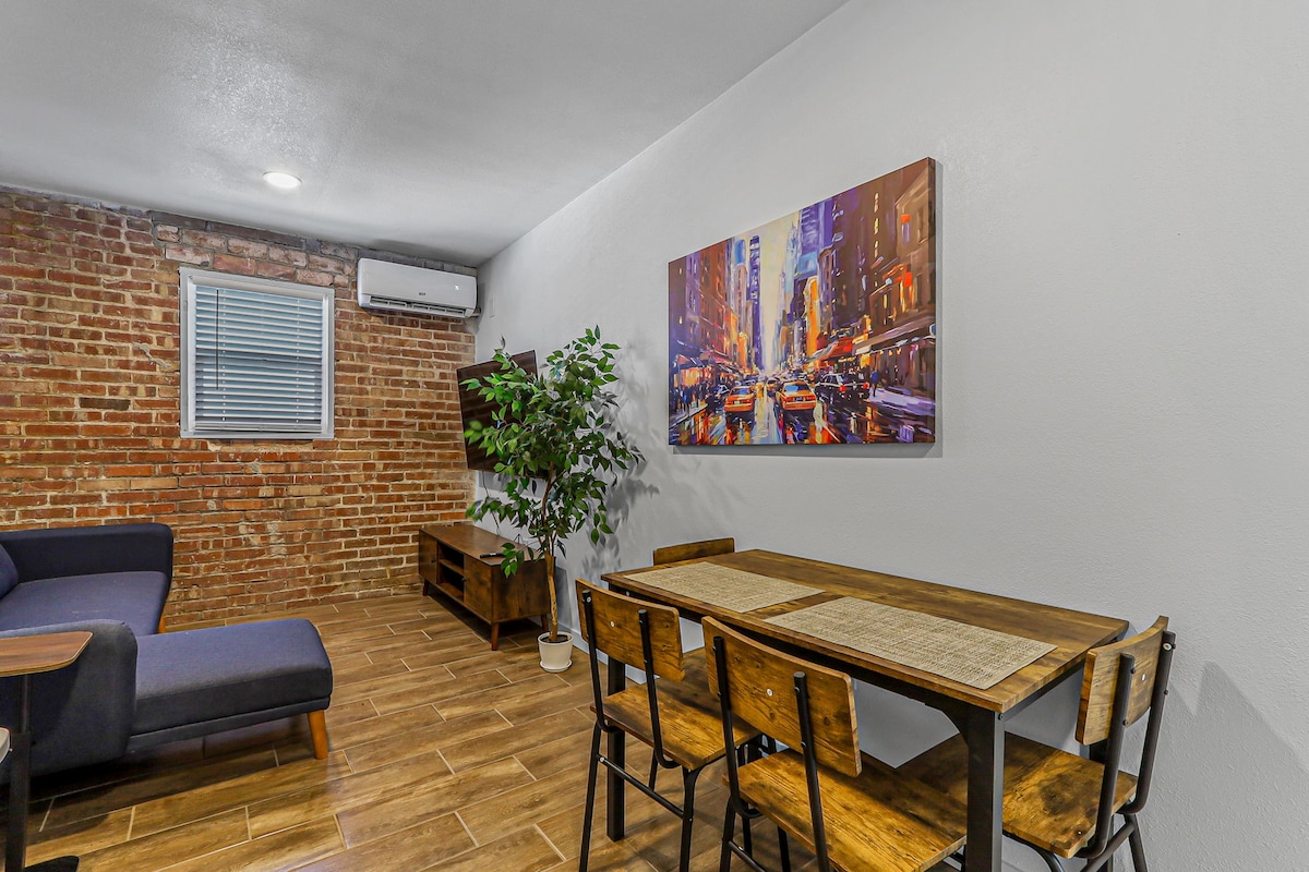 Cozy 1 bedroom with kitchen and bath. Fully furnished with king size bed. Located in a diverse urban downtown neighborhood, NO free parking available. Perfect for those who don't mind short walks. Apartment is a 3 minute walk to Southwest University baseball park/ soccer stadium, 10 minute walk to El Paso convention center, downtown entertainment district, and passport agency.