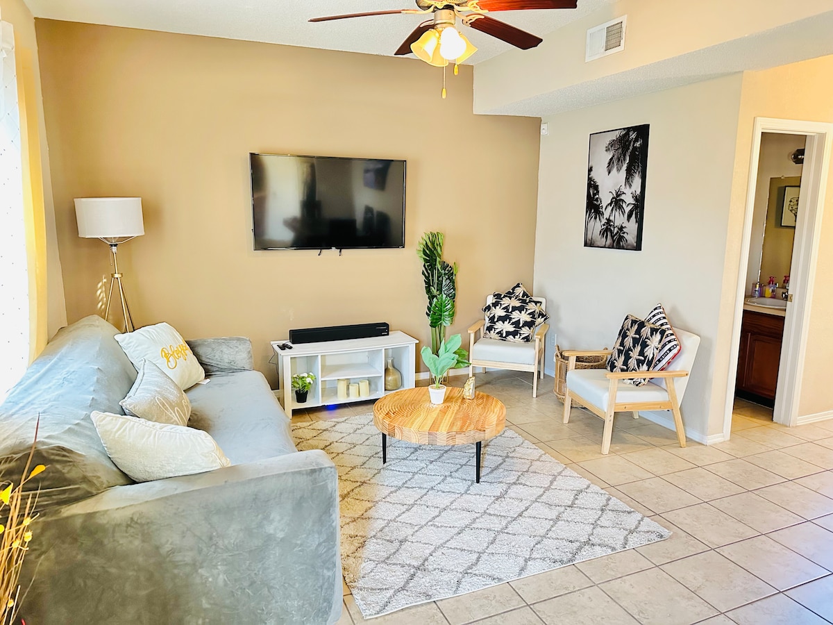 🏡 2-Bedroom Gated Community Apartment 🛌 Master: Queen bed, private bath, blackout curtains & soft linens 🛌 Second: Queen bed, cozy & spacious 🛋️ Living room with large sofa & flat-screen TV 🍳 Fully equipped kitchen & dining for family meals 🏊♂️ Two pools with grills & mountain views 🏋️♀️ Gym with cardio & yoga equipment 🌐 Fast Wi-Fi ⚡ | 🧺 On-site laundry ❄️ Central heating & cooling 🚗 Two reserved parking spaces + guest parking 🔒 Self-check-in & safety detectors