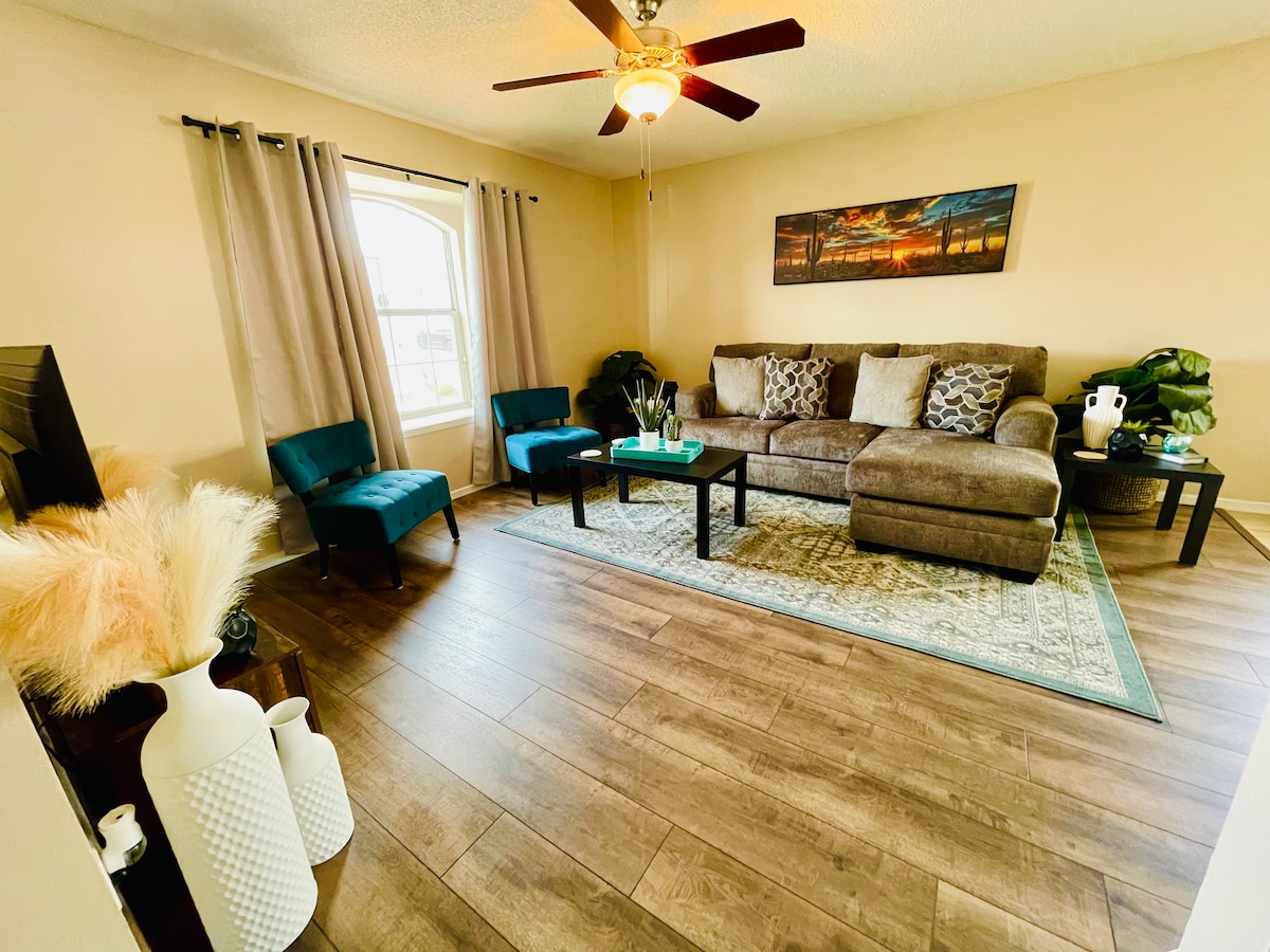 THIS SPACIOUS VILLA IS UPGRADED IN AND OUT. IT IS LOCATED ON THE WESTSIDE OF TOWN NEAR SHOPPING, RESTAURANTS AND MINUTES FROM THE FREEWAY (I-10). WE HAVE 3 KING BEDS, 1 QUEEN BED, ROLLAWAY BED BASED ON AVAILABILITY THIS STYLISH PLACE IS PERFECT FOR LAST MINUTES RESERVATION OR MONTH LONG STAYS. YOU WILL FALL IN LOVE WITH EACH UNIQUE BEDROOM ALONG WITH ALL THE SPACE IN THE LIVING ROOM AREA