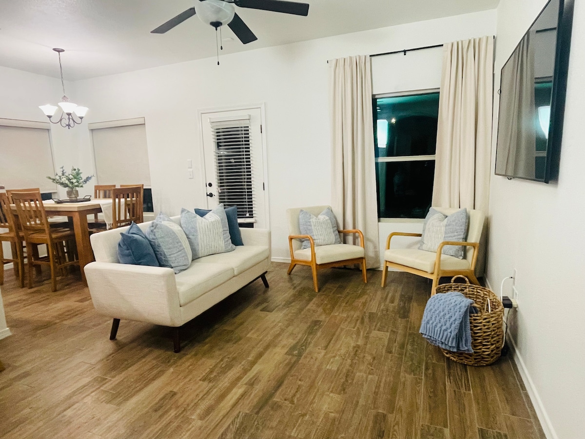 Perfectly located in Central El Paso! Found near the Franklin Mountain range, Downtown El Paso, great restaurants, sporting arenas, multiple hospitals, Fort Bliss Army base, and much more! Conveniently near multiple freeways for quick access to surrounding locations! -Newly renovated -Equipped with new modern appliances -Washer and dryer -Refrigerated air and heating -Comfortable queen bed -Sleeper sofa to accommodate a 3rd guest or children -Pack n’ play available for extra fee by request