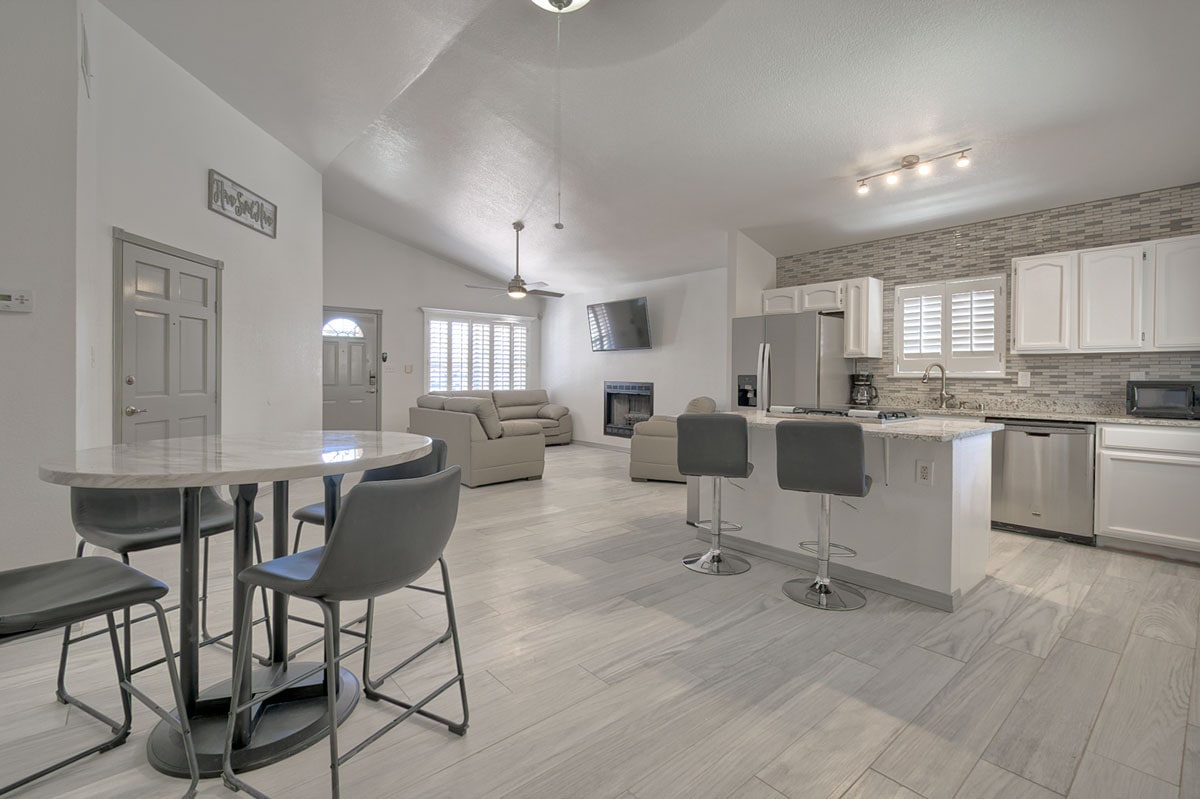 No parties allowed. 6 guest maximum. Relaxed home offers a tranquil, enjoyable energy for your travels. Spacious 3 Bed+3 bath. Cozy west side neighborhood. Generous, comfortable lounging areas, fully stocked kitchen+workspace. Enjoy new mattresses & fine linens. Take in glorious sunsets views pool side. New decking+faux lawn to chill out or grill in. Charming sun room. Garage for your car. *Strict no party policy. Security camera located in the front yard. Immediate eviction if more than 6 guest
