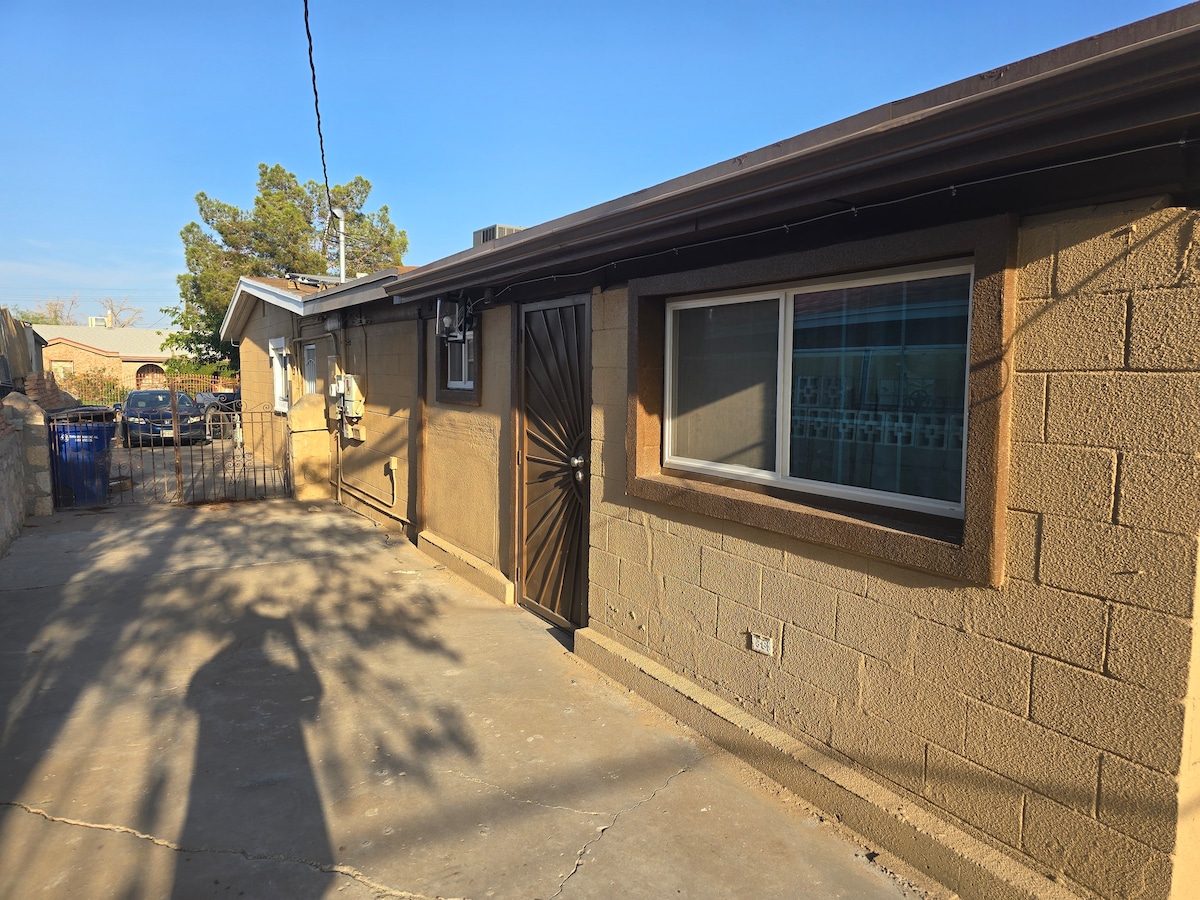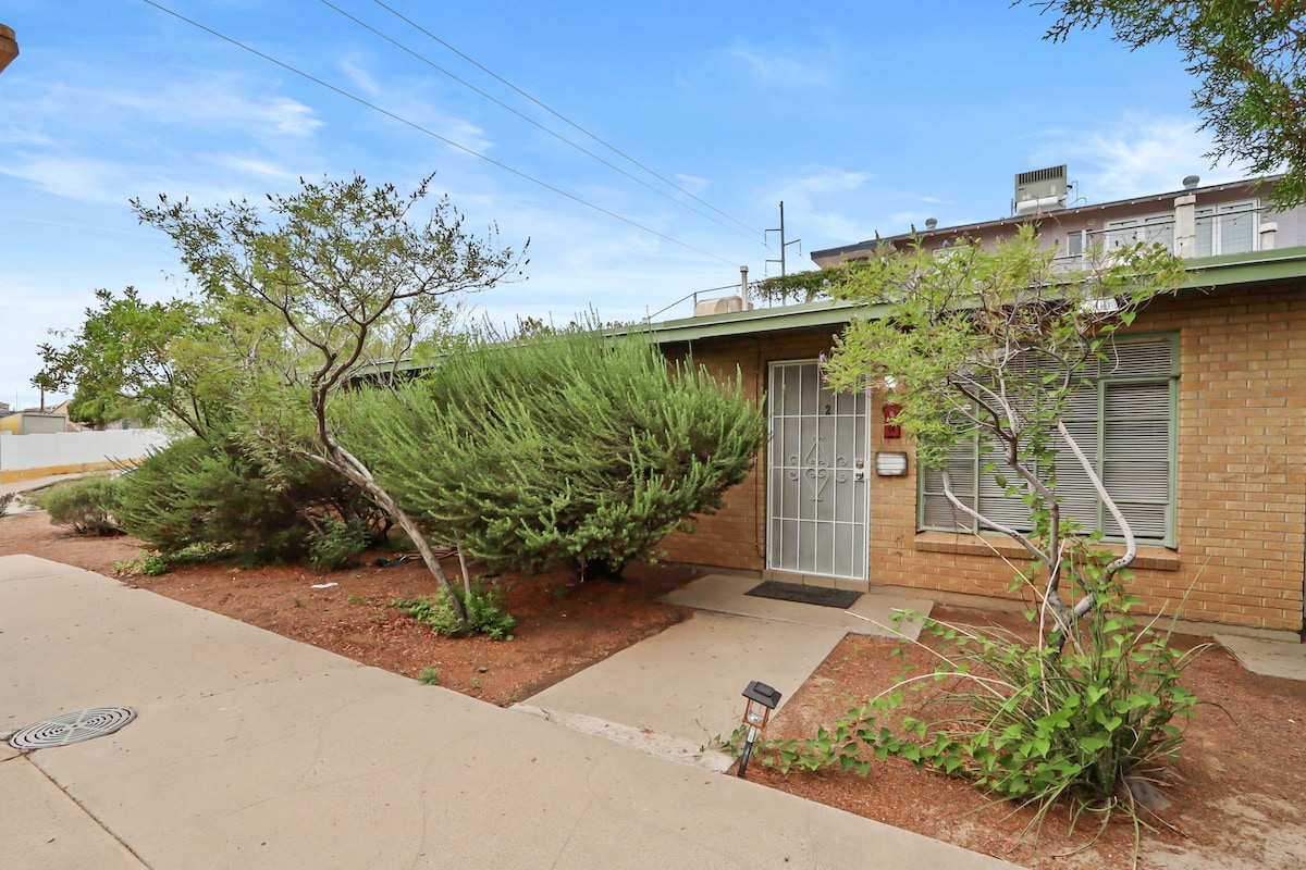 Cozy, nicely decorated one bedroom apartment with king size bed and sofa bed.Near hospitals, UTEP, Chihuahua’s baseball stadium and downtown entertainment district. 4 blocks from I-10. 4 blocks from new streetcar system and bus stops. Quiet secure older residential area in the heart of the city. Internet, smart TV, kitchen with stove, microwave, coffee maker, and refrigerator. Unit is equipped with evaporative cooling plus an additional refrigerated a/c unit in the bedroom.