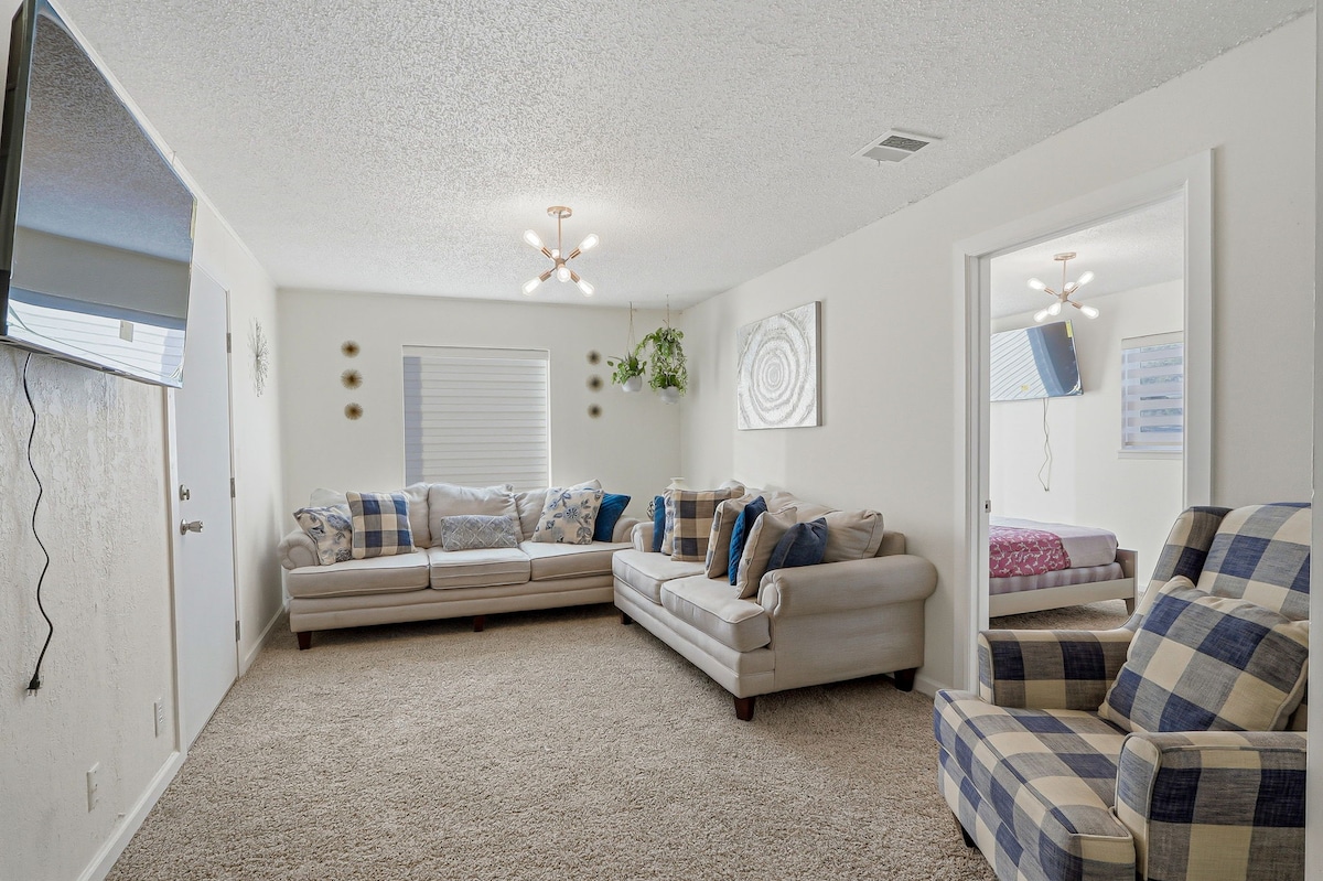 This centrally located 1 BR apartment is located in close proximity to Downtown, West and East El Paso, Hospitals, Restaurants, etc. The unit has 1 king sized bed that sleeps two, 1 sofa bed that sleeps 1, mini-splits AC units for your comfort, a fully equipped kitchen, dining area with table for 4, and den with a sofa bed, laundry available for stays of 7 days plus, and a 50’ smart TV with FREE WiFi.