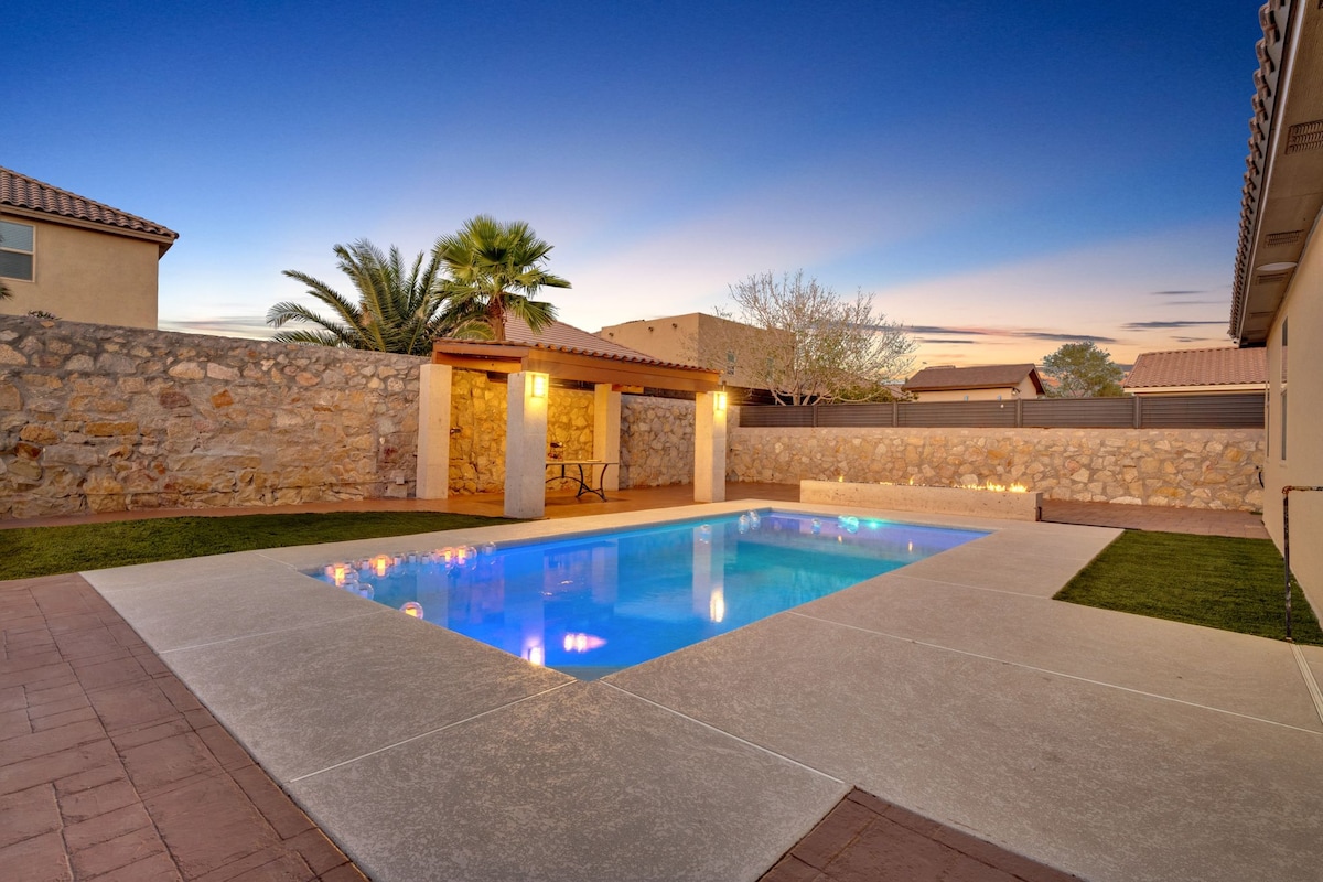 Have fun with the whole family at this stylish home with Swimming Pool and outdoor kitchen. Our home is 2,300 sq ft home in a quiet and safe eastside neighborhood. You are only minutes away from El Paso 2 major hwys, I10 and Loop 365 to get you to any side of town. There is multiple retail, restaurants, and grocery stores nearby. Pool heat is not included in your reservation cost. Please ask about pricing with at least 24 hrs prior to arrival as this needs to be arranged ahead of time.