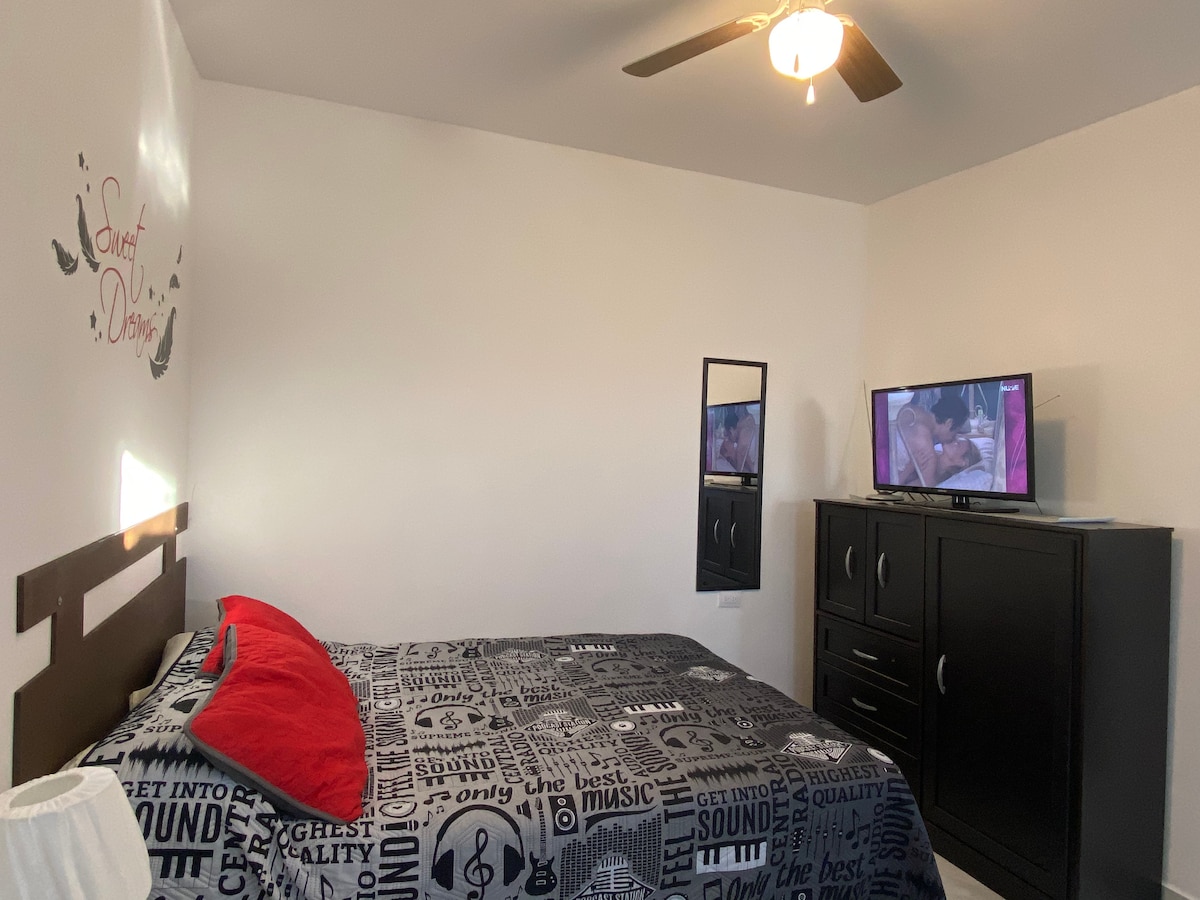 This special place is close to everything. Enjoy a modern, cozy, and artistic experience in this luxury studio suite designed for relaxation. Independent entrance for full privacy. The Space includes a King-size bed, Full bathroom, Kitchenette , Dining area, closet, Smart TV and WiFi, Dual AC Unit and a Free Private parking with remote control access for One vehicle. Self Check-in and out. Located just minutes away from: Airport, hospitals, restaurants, shooping centers, Americas Int. Bridge.