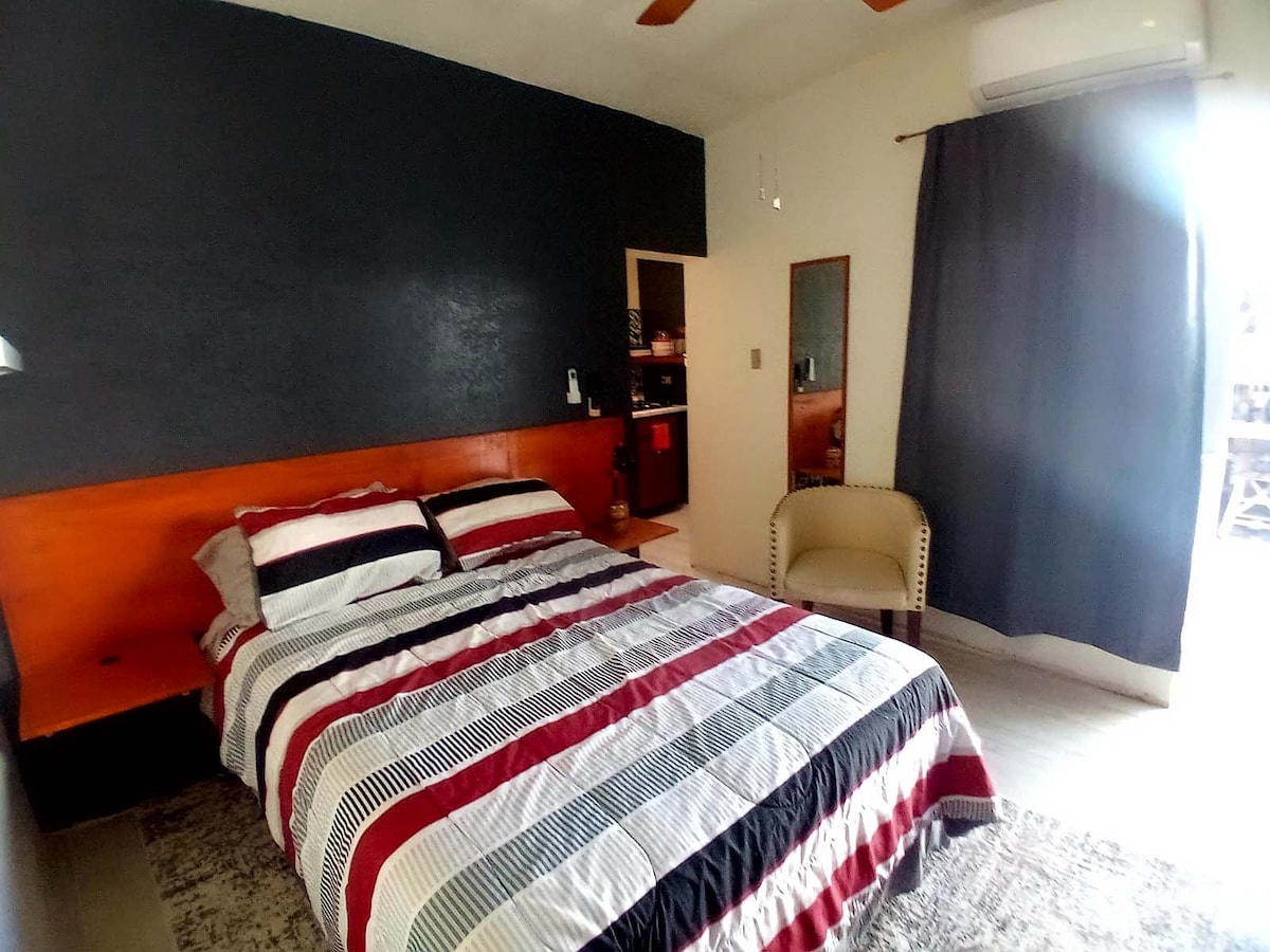 Departamento tipo estudio (sin divisiones), disfruta de nuestro espacio tranquilo y céntrico y de fácil acceso, cercano al Consulado Americano (7 minutos), centro comercial Las Misiones, aeropuerto, central camionera, Parque Central, plazas comerciales y supermercados, bancos, a dos cuadras de Avenida Tecnológico. contamos con plancha, frigobar, microondas, cafetera, licuadora, utensilios básicos de cocina, parrilla, cámaras de vigilancia, escritorio de trabajo, guardarropa, baño amplio.