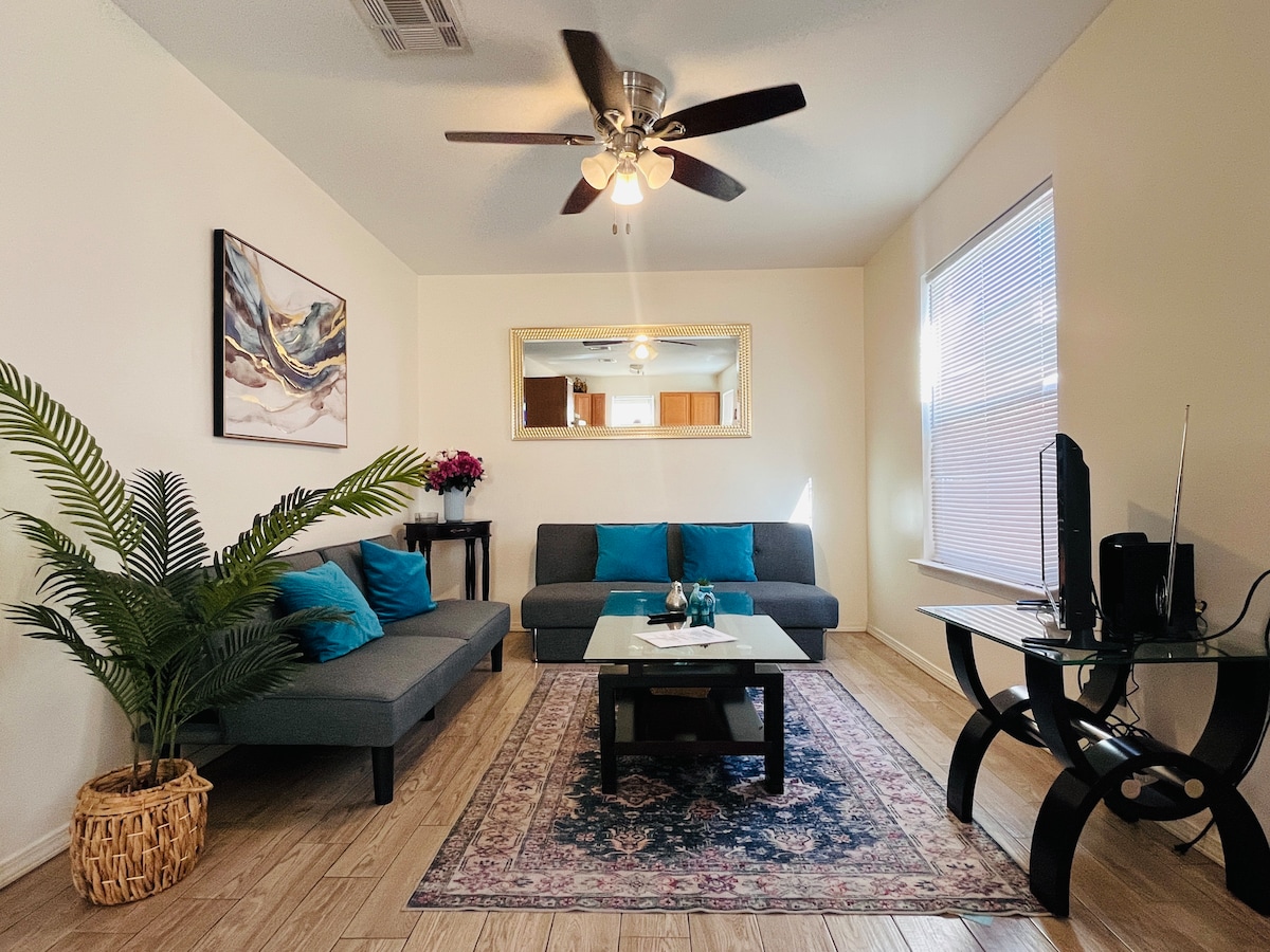 EN NUESTRO ESPACIO ENCONTRARAS UN DEPARTAMENTO CON REFRIGERACIÓN, ARMONÍA, MUY LINDO Y AGRADABLE UBICADO EN UNA DE LAS ZONAS RESIDENCIALES MAS TRANQUILAS Y SEGURAS DEL PASO. MUY CERCA DEL I -10, LOS OUTLETS, SUNLAND PARK, UTEP, Y GRANDES CENTROS COMERCIALES COMO WALMART, ROSS, TJ MAXX, ETC. CERCA DE TRANSMOUNTAIN Y CICLOVÍAS. PROHIBIDO FUMAR DENTRO DEL DEPARTAMENTO, HABRÁ UNA MULTA DE 300 DÓLARES POR FUMAR. Wifi Rápido (1000 Mbps).