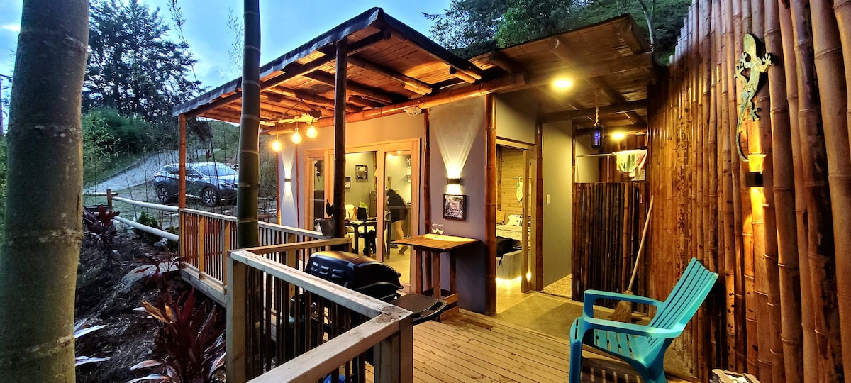 Excelente opción para familias y grupos que disfrutan estar en contacto con la NATURALEZA y la tranquilidad desde un espacio super confortable, con las mejores prestaciones y 100% privado. Cerca a todo el entorno TURISTICO. Sitio MÁGICO en las noches. Espectacular zona de PISCINA con aguas naturales de nacimiento. JACUZZI privado con agua climatizada, zona social con BBQ, WiFi de alta velocidad si deseas trabajar durante tu estadía. No apta para eventos nocturnos