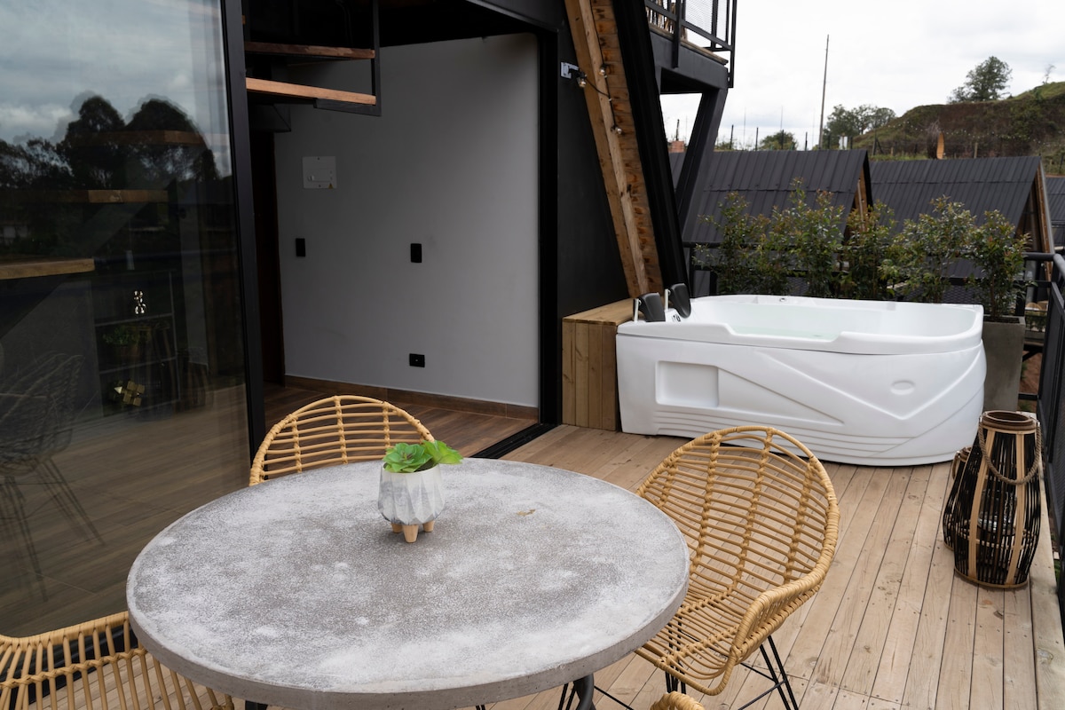 Cabaña romántica con jacuzzi y paisaje único