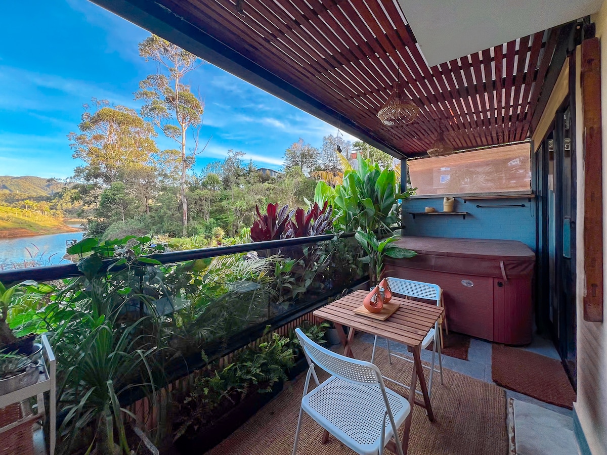 🥘 Room service with local cuisine made from fresh ingredients grown in our garden and prepared on the spot 🍳 Breakfast included 🌐 High-speed fiber WiFi to stay connected 🛁 Private jacuzzi with stunning lake view 🔥 Gas fireplace for cozy nights 🚣♀️ Kayak and paddle board included to explore the lake 🐦 Birdwatching right from your terrace 📍 Located across the lake from one of the region’s most iconic estates, only 15 minutes from La Piedra del Peñol and 18 minutes from Guatapé.