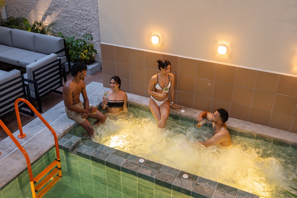 Luxury meets comfort in this exclusive Poblado home—your private escape with stunning design, perfect amenities & a powerful jacuzzi. - Private jacuzzi & BBQ - Presidential suite: king bed, tub, steam room, projector - Ultra Fast wifi/500mgs - 4 Smart TVs (55″) - 3 ensuite bedrooms w/ A/C & smart TVs - Designer kitchen & dining for 6 - Home office: 3 monitors, chess set - Wine cellar (fee applies) - Outdoor lounge w/ loungers, smart TV - Laundry area & storage - Top-tier finishes