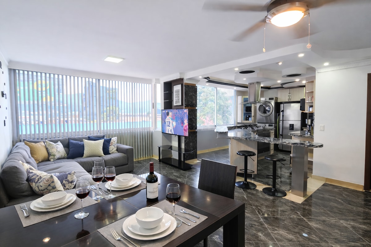 Relax in this elegant, modern apartment in the heart of Manila – El Poblado, just minutes from Provenza, Parque Lleras, and top medical centers such as Clínica Medellín, Clínica Las Vegas, and Clínica El Rosario. ✔Enjoy a king-size bed with premium linens, ✔Stylish bathroom with walk-in shower, ✔Smart TV, ✔High-speed fiber Wi-Fi ✔Fully equipped kitchen. ✔Unwind on your private balcony after exploring the city. ✔Fan ✔ Hot Water ✨Perfect for short stays, business trips, or recovery stays.
