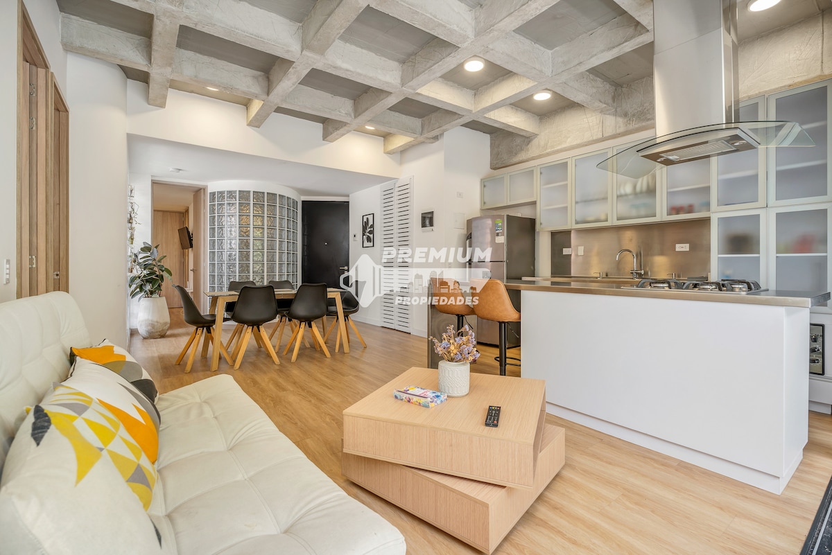 Elegant 104 m² (1,120 ft²) apartment with panoramic views of Medellín. Featuring two bedrooms with King-size beds and private bathrooms, a guest bathroom, air conditioning, and a spacious private terrace. The building offers an infinity pool, coworking space, gym, and a fully equipped kitchen for gastronomic experiences. Located just 9 minutes from El Poblado, Provenza, and Parque Lleras. ✨ A space where design meets comfort, and Medellín becomes your private stage.