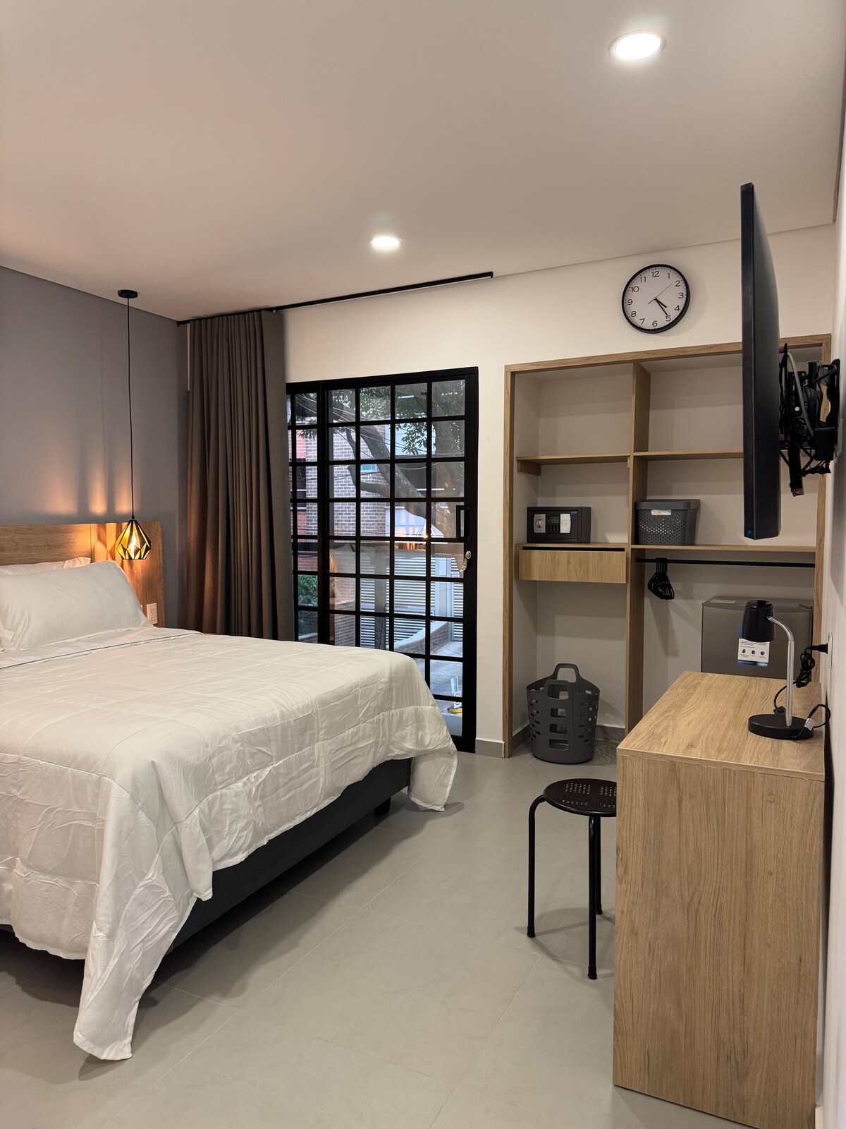 - Habitaciones con baño y balcón privado, SmarTV, caja fuerte y aire acondicionado, WiFi fibra óptica. - Áreas sociales compartidas como cocina, área de trabajo y zona de lavado y secado de ropas. - El confort de las habitaciones esta diseñado para disfrutar de una experiencia con estilo en este alojamiento céntrico, vecino de la zona exclusiva de Laureles, centros comerciales, estadio, plaza de toros, estaciones del metro, entre muchas otras opciones estratégicas de tu estadía.