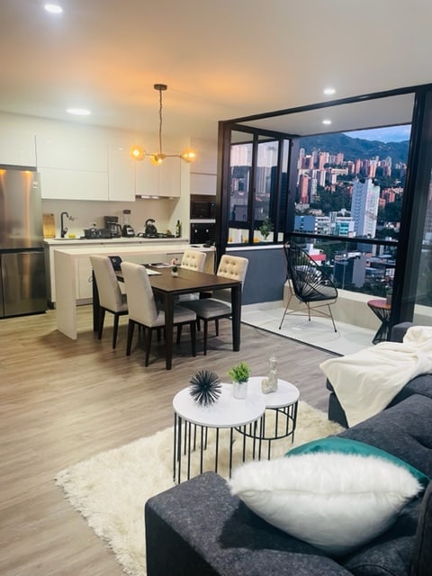 RECENTLY RENOVATED -High-speed internet great for remote work -Brand new A/C -Fully renovated Industrial design apartment -King size bed -Breathtaking views of Medellín (trust me, worthwhile to stay here) -19th floor -Unbeatable location in Poblado near to Provenza and Lleras Park -Modern amenities -Spacious living area -Smart TV x 2 -Fully equipped kitchen -Washer & Dryer Tower -Pool -Gym -Coworking space -Restaurant inside the building -Private parking -Self check-in -24/7 Security
