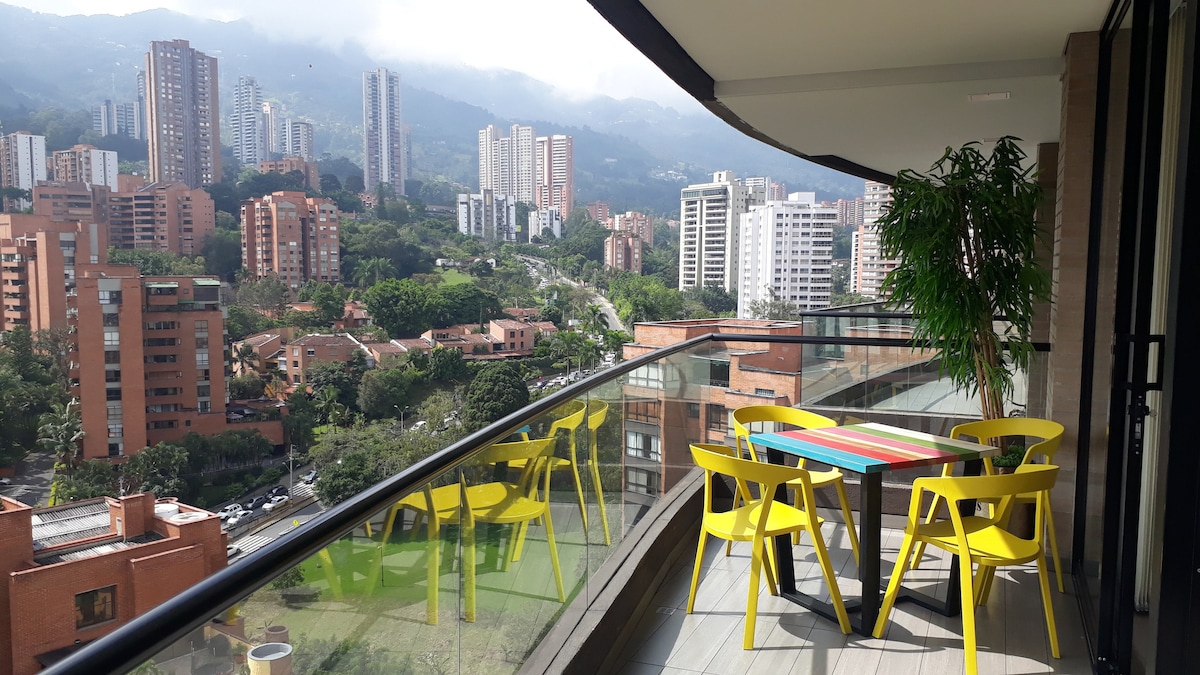 This listing is located right in the heart of Medellin. Located on the 10th floor you will love the clean air and the amazing view. The windows all have automatic blinds for a very modern touch. Within a 3 minute walk there is a grocery store called la vacita 🐄. They carry everything you will need from food, water, & a full pharmacy to make your self feel right at home. The main mall Santafe is on the same street. 15-20 min walk down hill or a 3-5 minute tax ride that will cost you $2 u.s.